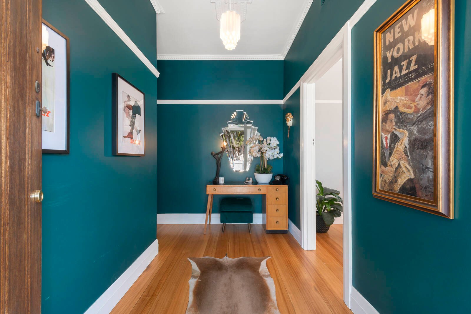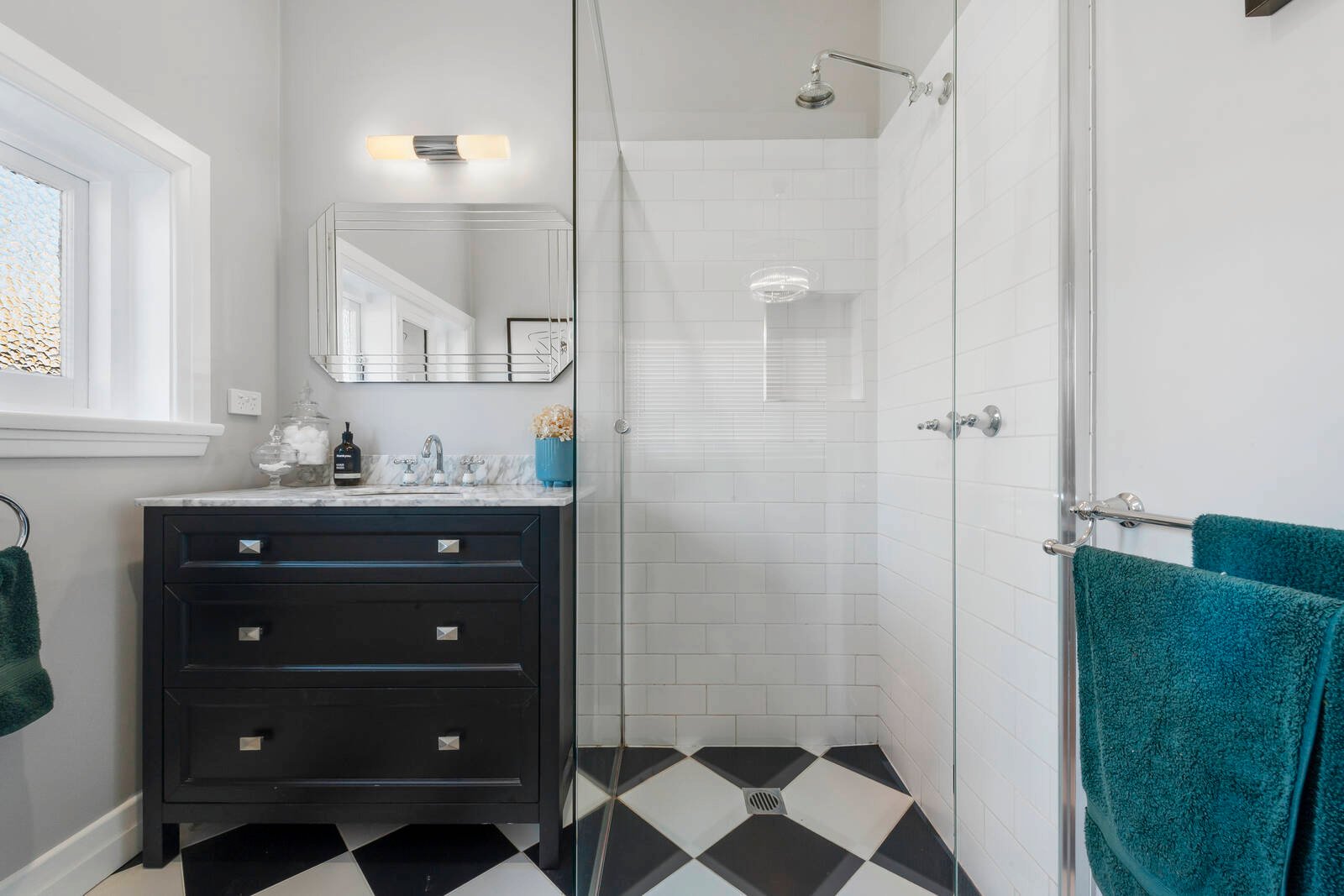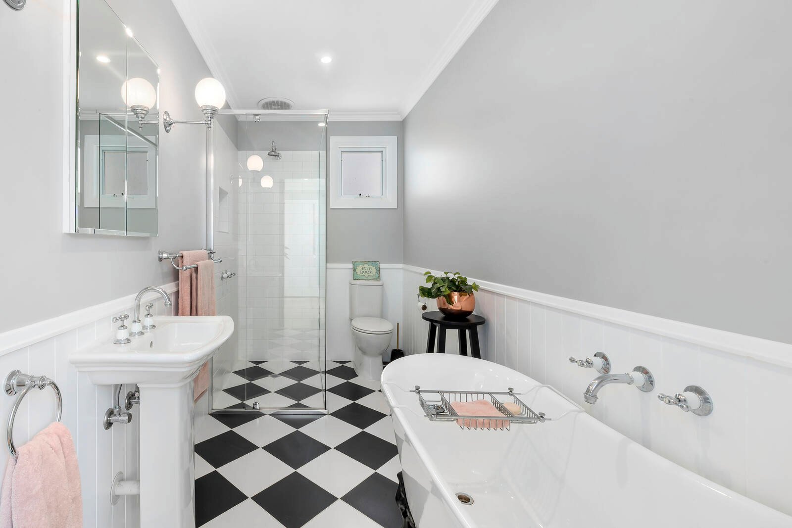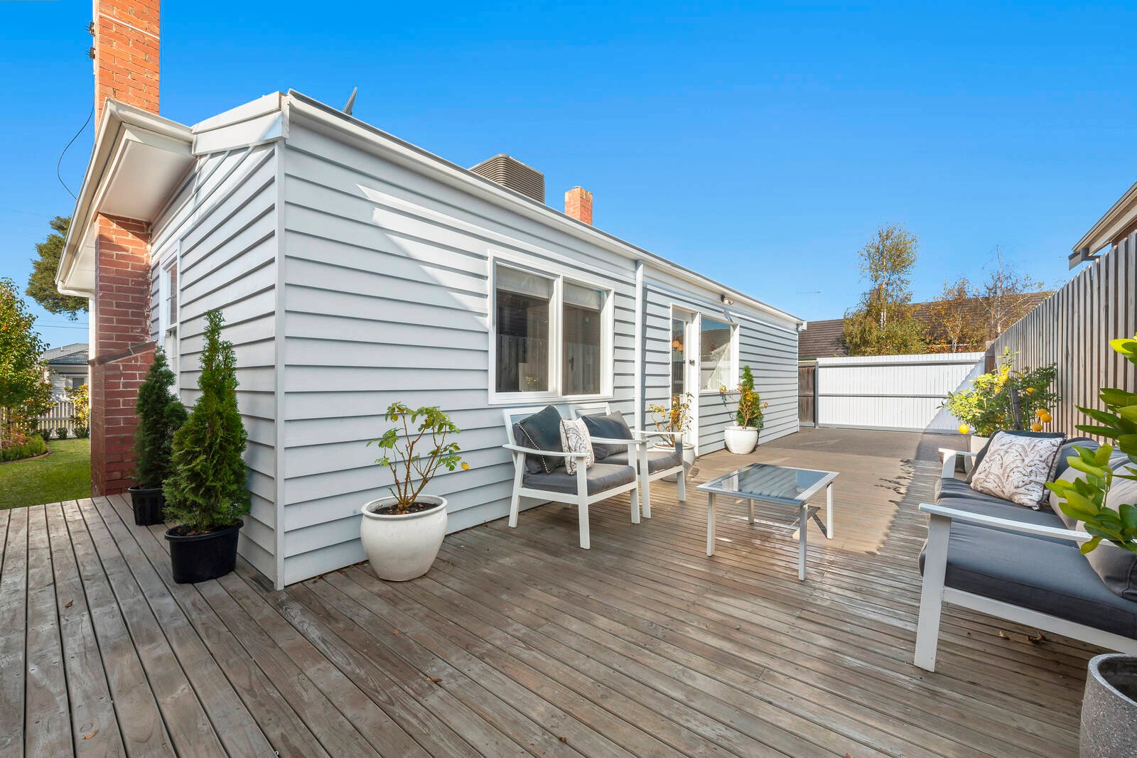 To the left of the home is the bedroom wing with two bedrooms with built in robes; the master with ensuite, plus there is also a study or third bedroom located at the back of the home. The striking black and white floor tile in the main bathroom with freestanding claw bath is carried through into the master ensuite. Convenient off street parking via Mervyn Street and a great entertaining deck ready for the evening G&T.