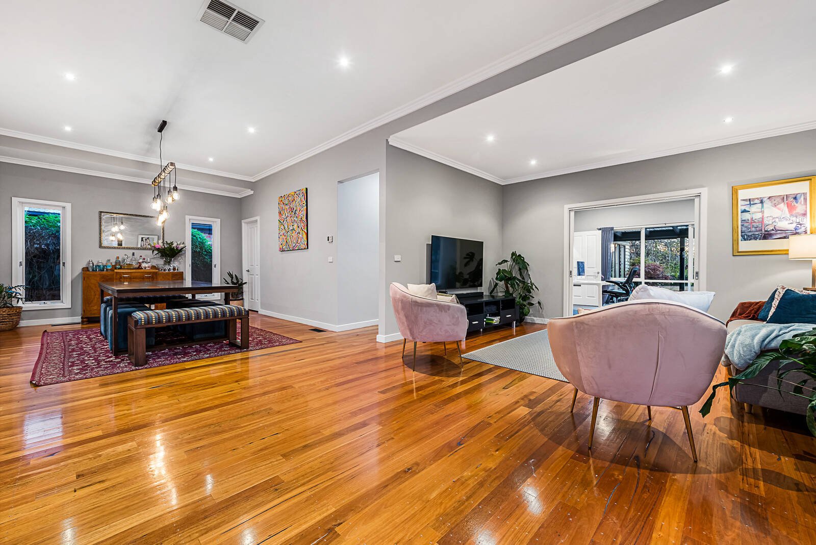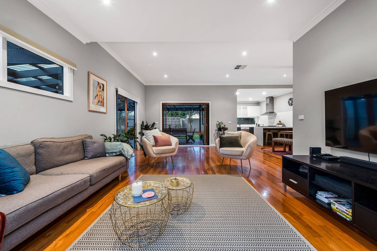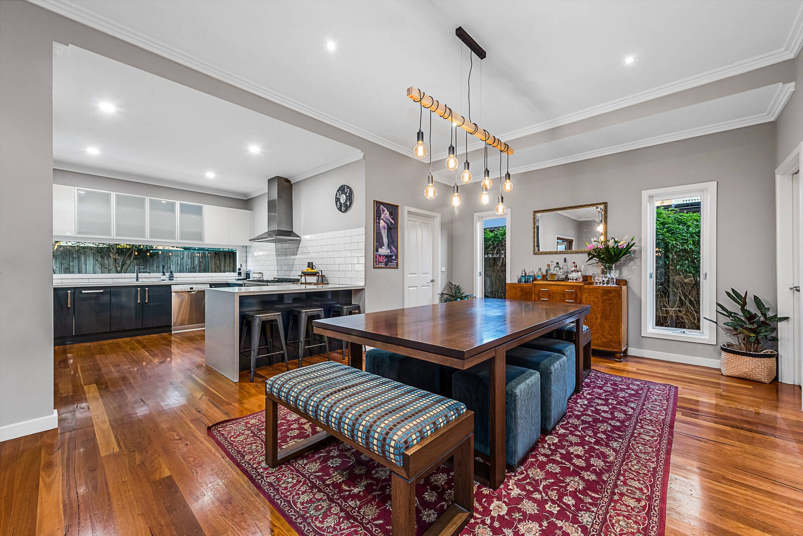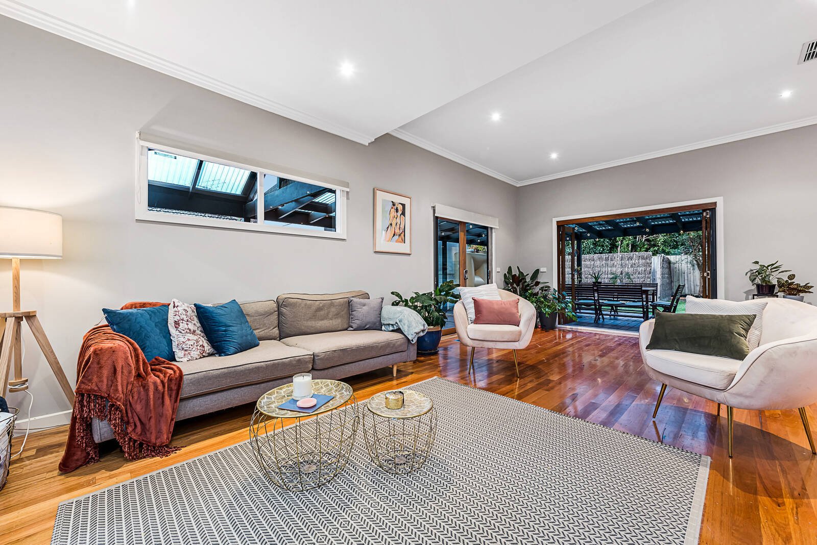 A clever dual-level design that promotes family function and contemporary style, creates a captivating environment for this stunning residence. Making an impressive lifestyle statement with striking timber floors throughout, the generous zoned layout includes a sleek stone-topped kitchen with double ovens, and sun-soaked open-plan living/dining featuring bi-fold doors that unfold to a wrap-around covered deck – a private setting for weatherproof entertaining. A main bedroom with stylish twin ensuite with freestanding bath/BIR and guest bedroom and bathroom are desirably placed on the ground floor to highlight lifestyle flexibility, whilst 2 further robed bedrooms on the upper-level share a striking fully-tiled bathroom. A feature packed home complete with home office/5th bedroom, retreat, ducted heating, evaporative/split system AC, ample storage, water tank, tandem carport and off street parking. Desirably located within easy reach of Oakleigh’s vibrant Eaton Mall and train station, parklands, schools, Monash University and Chadstone shopping centre.