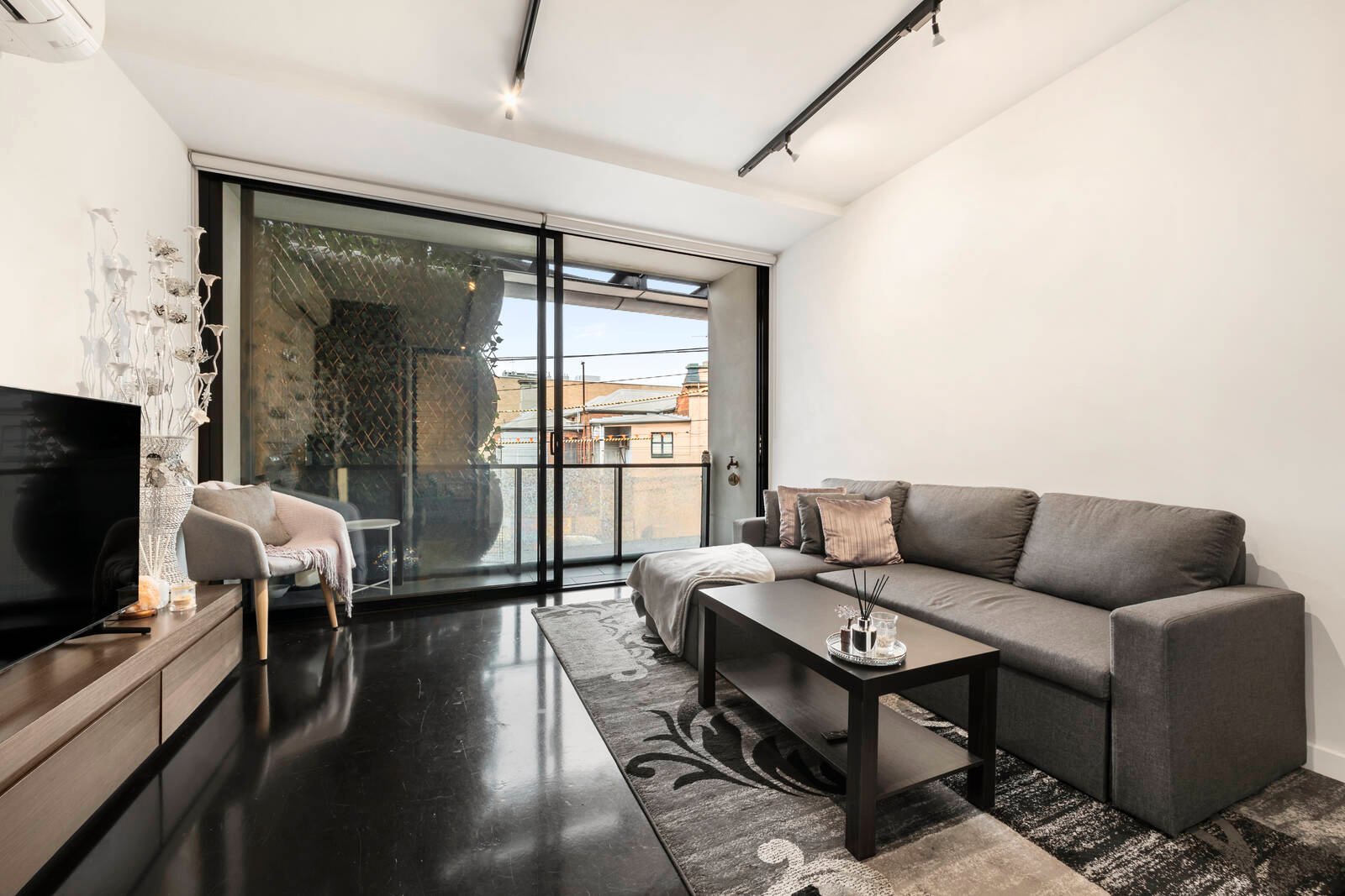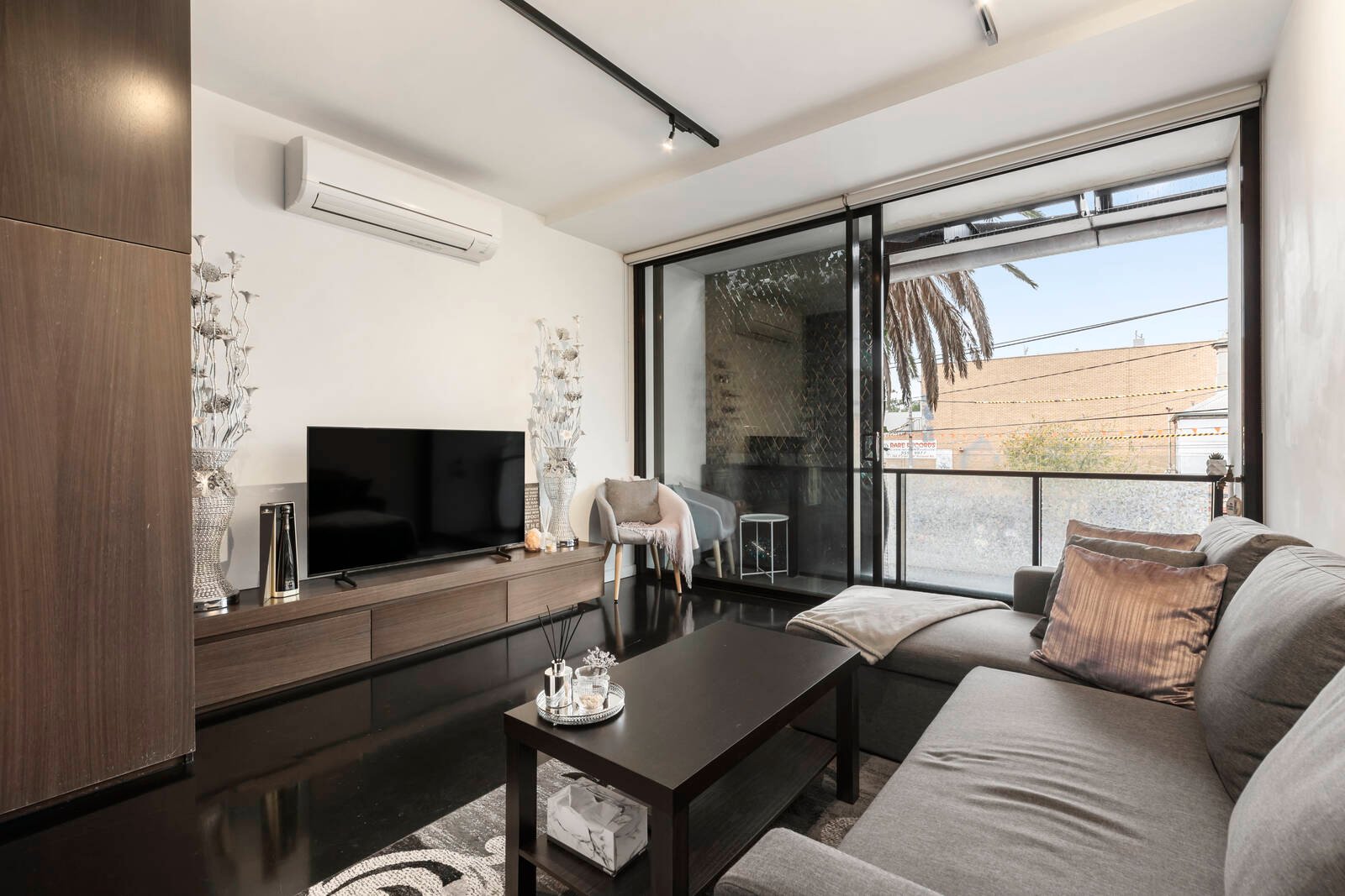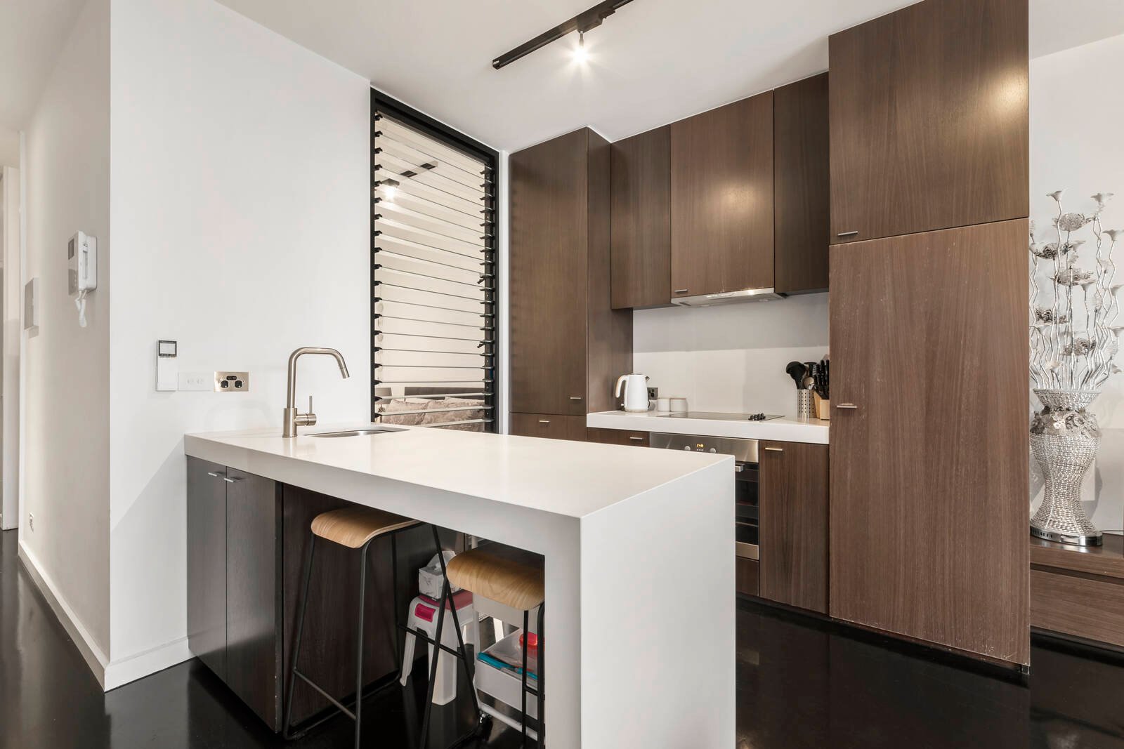 "The Face" - This beautifully finished one bedroom apartment is situated in an iconic St Kilda development and offers you an enviable lifestyle with everything from the beach, parks, vibrant Acland street, Luna park and city tram right on your doorstep. Walk through the entrance and into a striking lobby dressed in red drapes and black and white floor tiles. This one bedroom first floor luxury apartment comprises; entrance hallway with storage, open plan living area with generous balcony, gorgeous kitchen offering Miele appliances, dishwasher and integrated fridge, bedroom with BIR, stunning designer bathroom plus laundry facilities include a washing machine and dryer. Features include black polished concrete floors, reverse cycle heating and cooling, security entrance, lift access and secured basement car park.