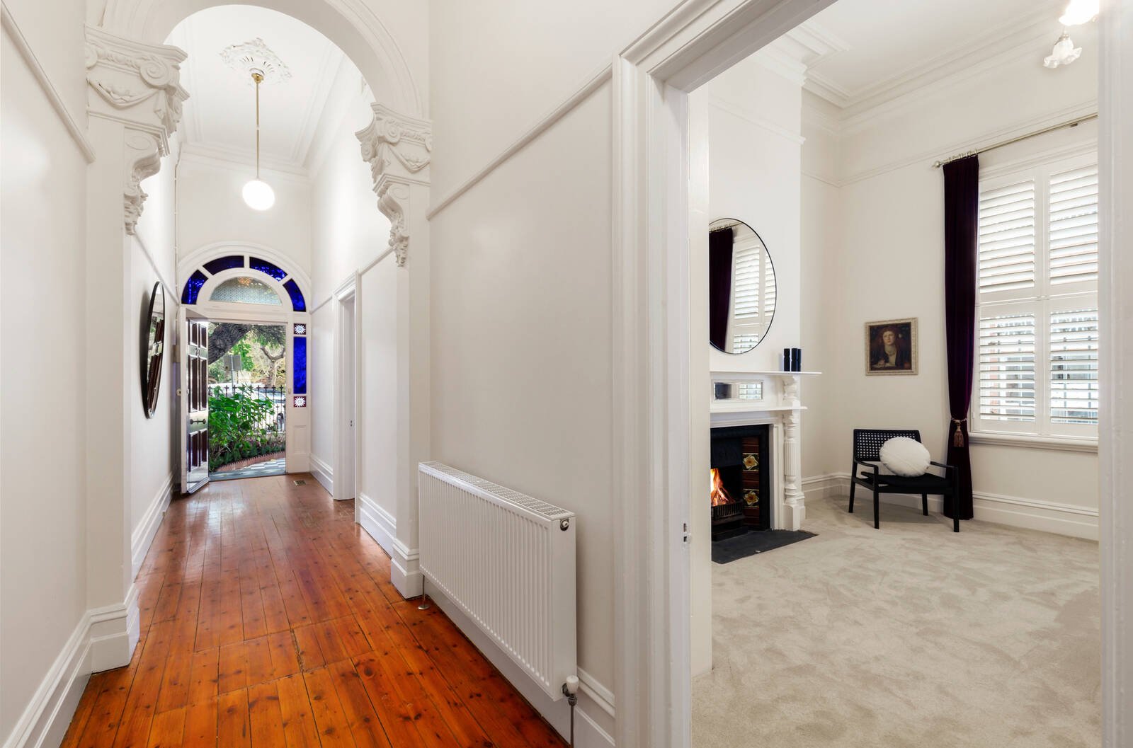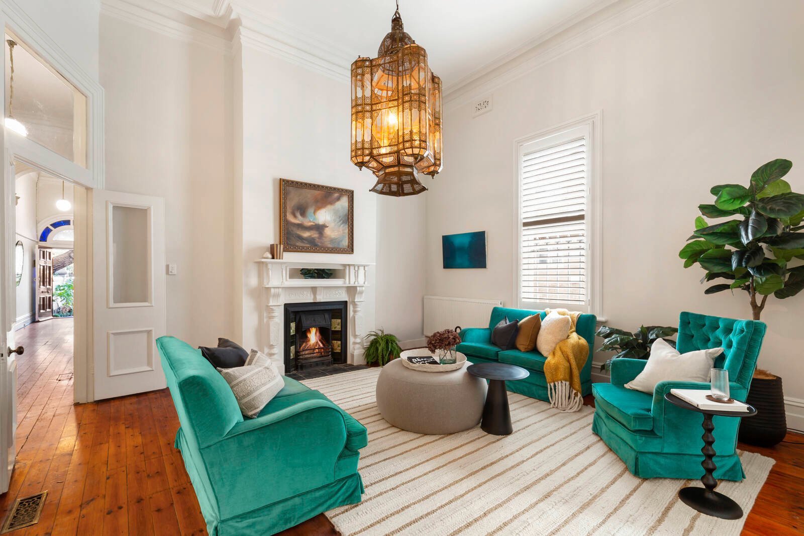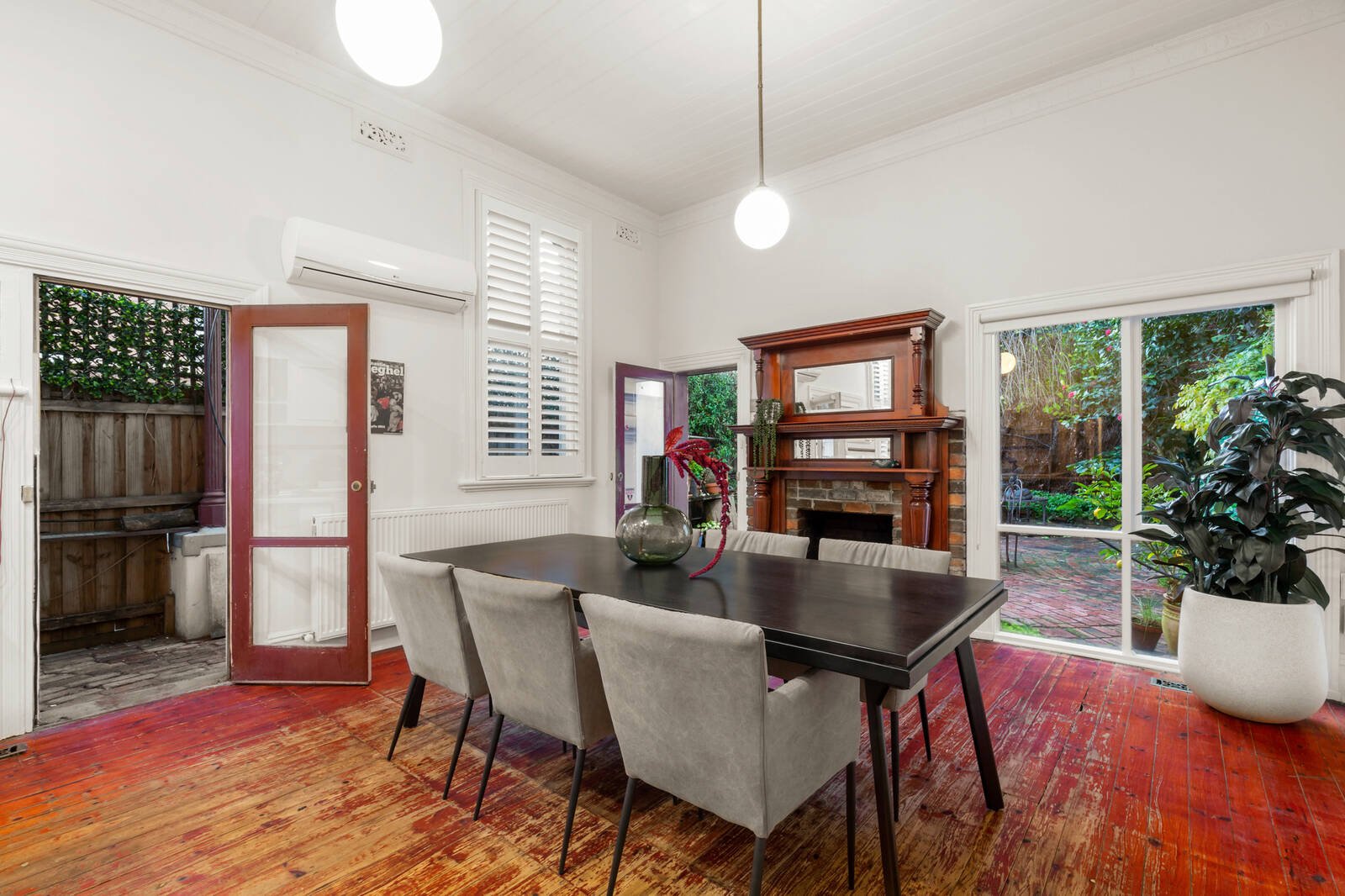 On a light filled corner in one of St Kilda’s most beautiful heritage lined streets, this magnificent Victorian c.1895 combines its stunning originality with extended modern function on an impressive 336sqm with deep northern rear garden. Set behind its original courtyard entry and exquisite iron lacework façade, illustrious original dimensions showcase soaring rosette ceilings, tall arched windows and early OFPs in a floorplan that flows from two generous bedrooms to a spacious central living room and adjoining study.