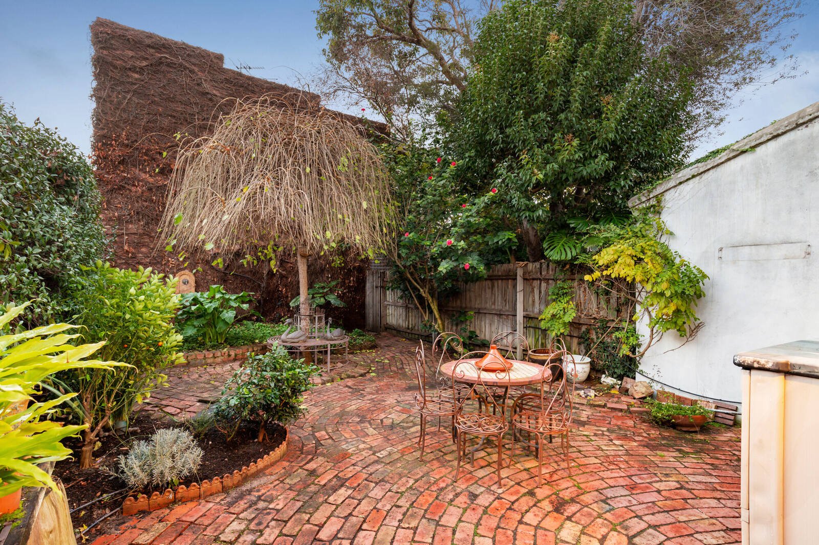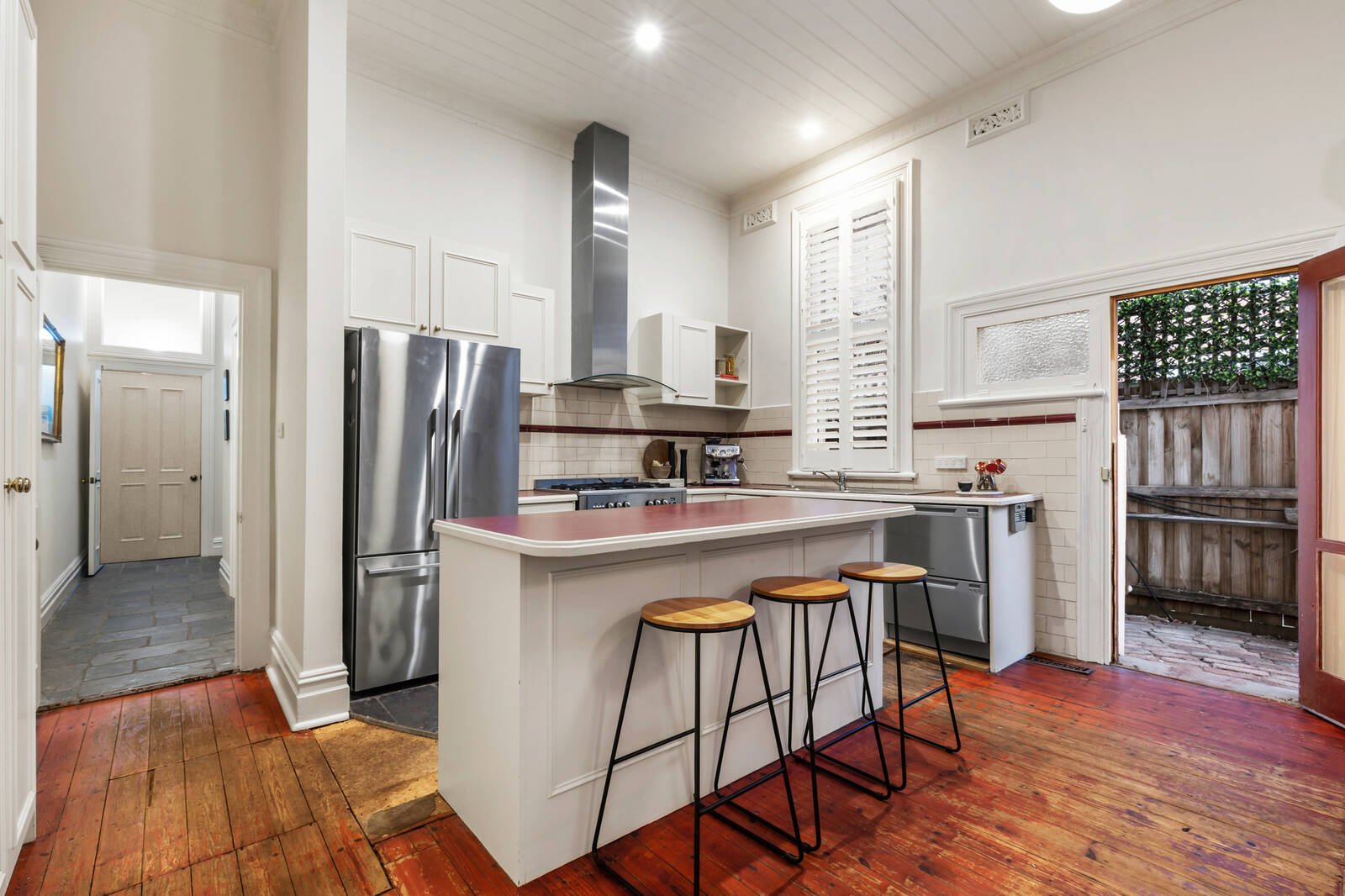 At the rear, a fully equipped modern kitchen overlooks bright open plan living and dining with handsome OFP before extensively paved alfresco areas and the landscaped rear garden. Other highlights include large modern bathroom, powder room, hidden laundry, hydronic heating, rich original details including timber floors, a wide arched hallway and etched glass entry. Immediately enjoy in complete comfort or explore update, further renovation/extension or second story addition possibilities (STCA) that take advantage of the northern rear and deep second frontage to Neptune Lane.