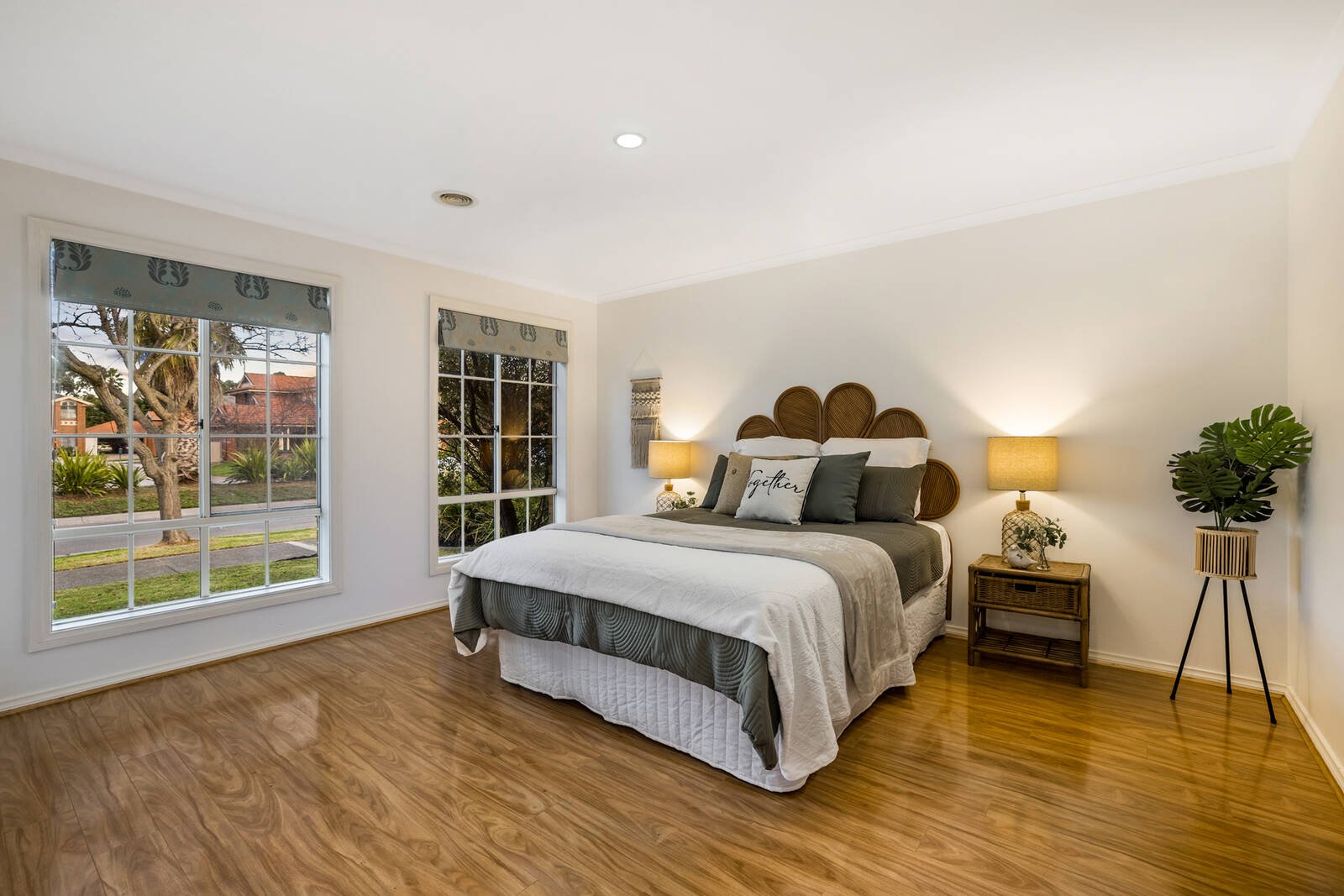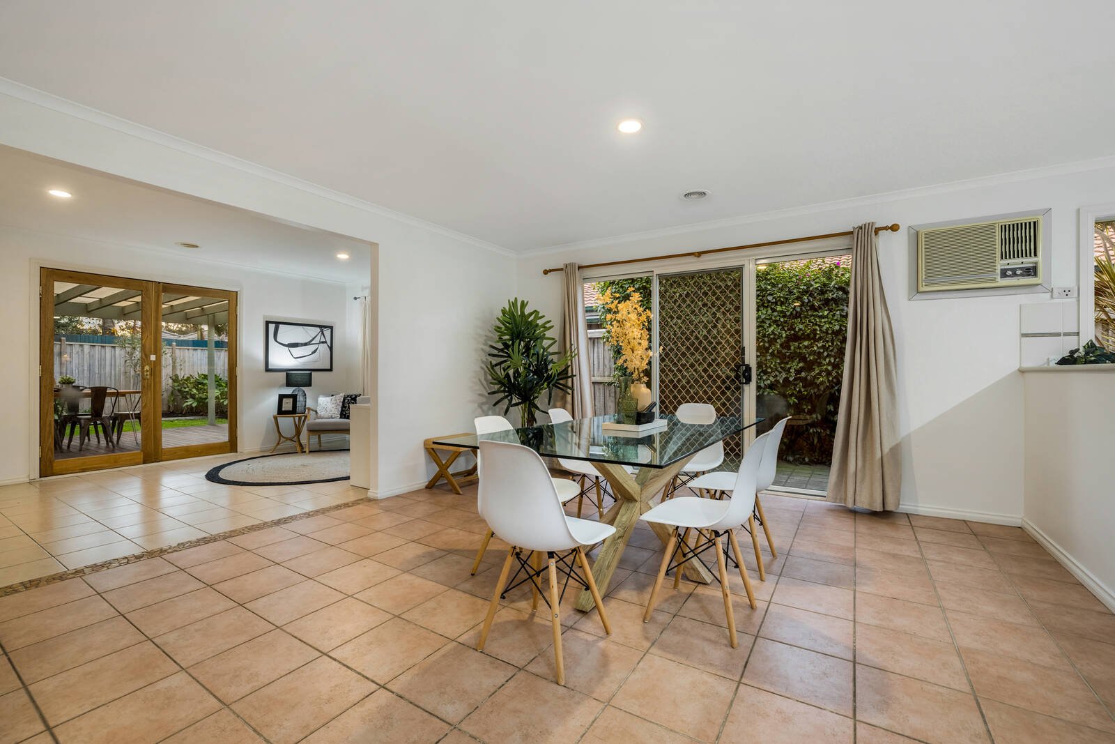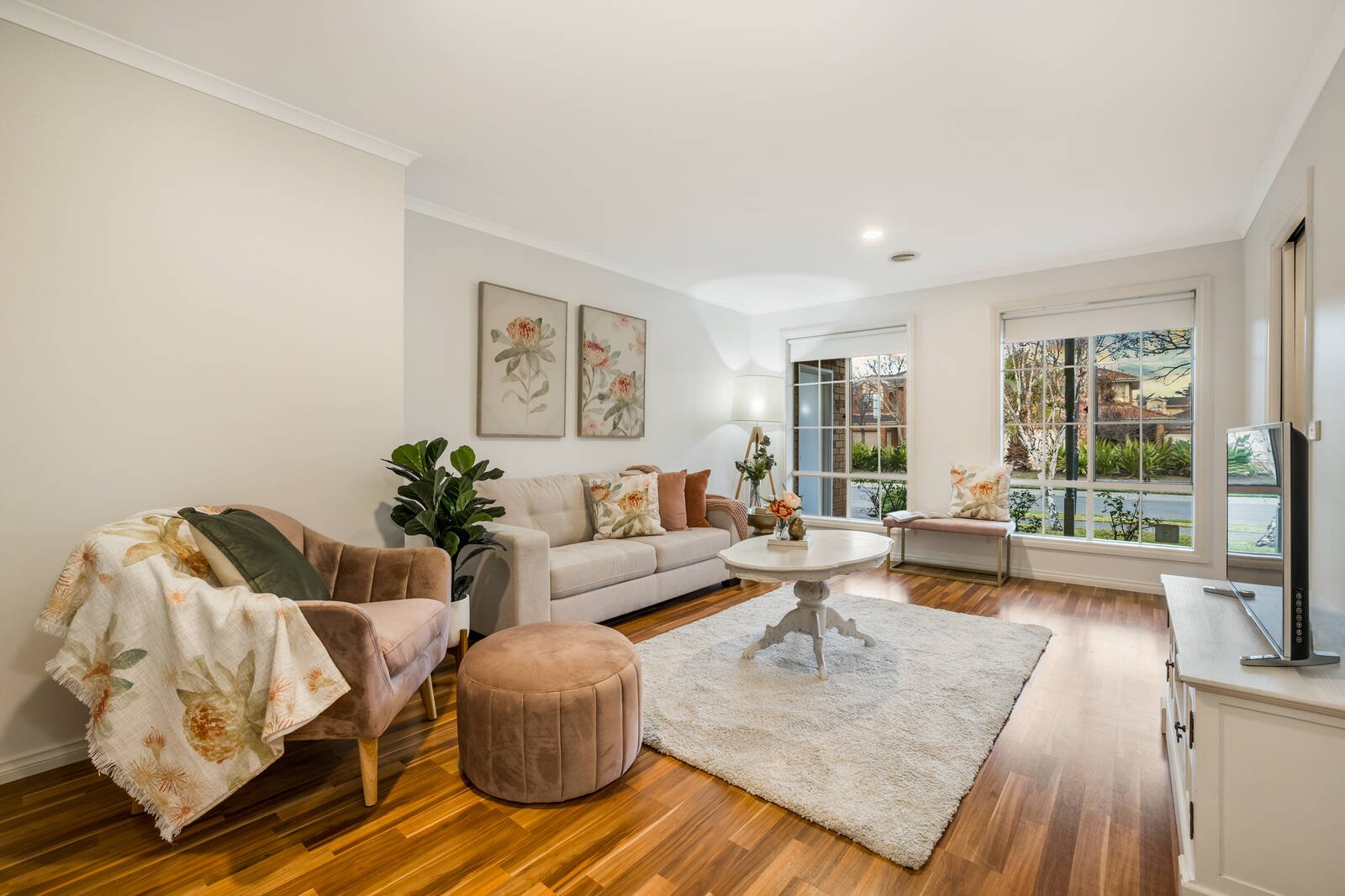 Find a space for every occasion with fine formal zone fitted with library shelving, immense family living-dining around a quality appliance kitchen, and a bonus rear rumpus-room with French doors to sheltered decking in the lawned rear yard. Then discover privacy in master-suite (with walk-in robe and elegant ensuite) to the front, a quiet kids’ wing of double bedrooms to the rear, and a flexible fifth bedroom (or home-office) in-between. Big on benefits with ducted heating plus an air-conditioner, and a double garage plus parking, there’s plenty to explore outside the front door too.