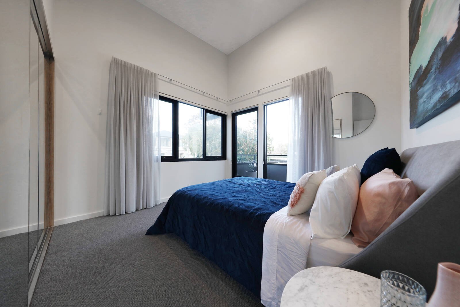 3 robed bedrooms are all fitted with a striking ensuite (2 with balconies capturing views), including the main bedroom privately zoned on its own level.