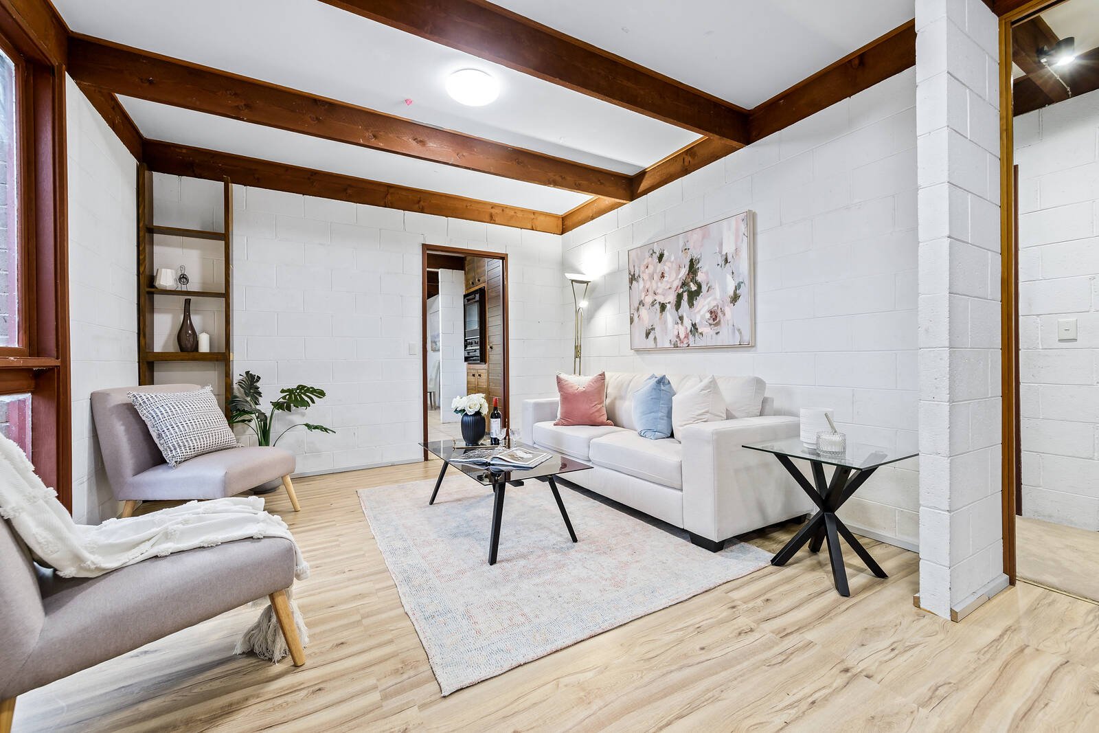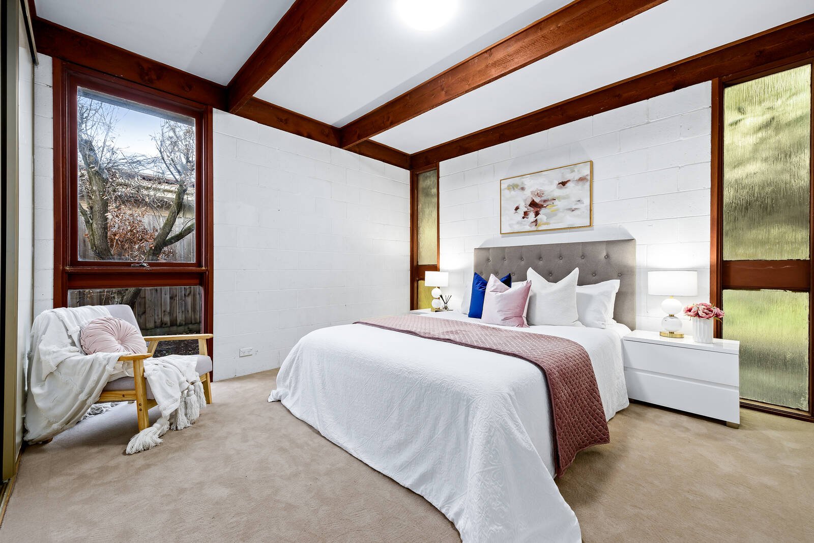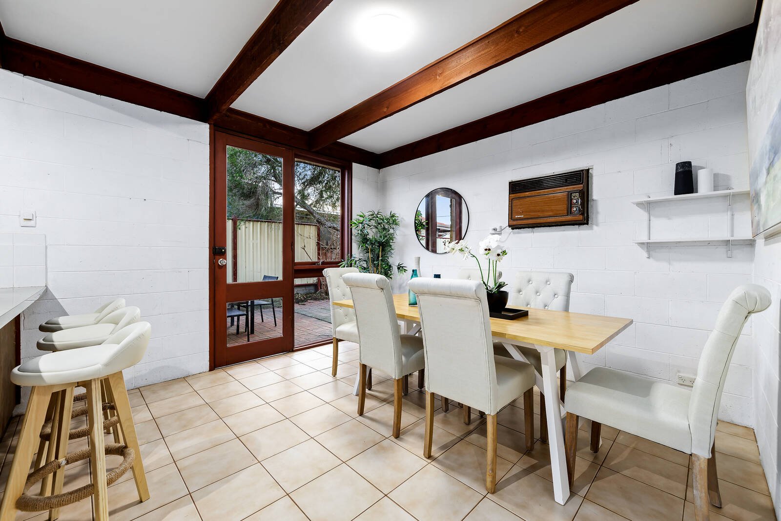 Beyond the classic brick exterior – you are instantly greeted by an ideal floor-plan; that will undoubtedly cater to various families. Carpeted floors add warmth through the spacious front living/dining zone, where exposed timber beamed ceilings and a bar add that character. From here, a relaxed meals area connects to the bright kitchen, featuring timber cabinetry, practical appliances and ample storage space.
