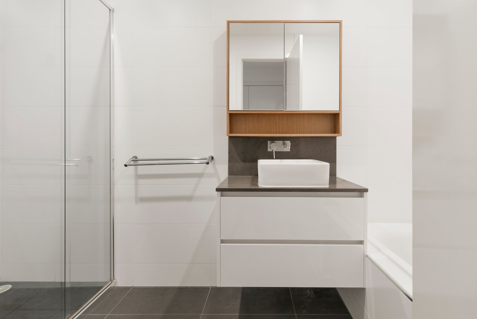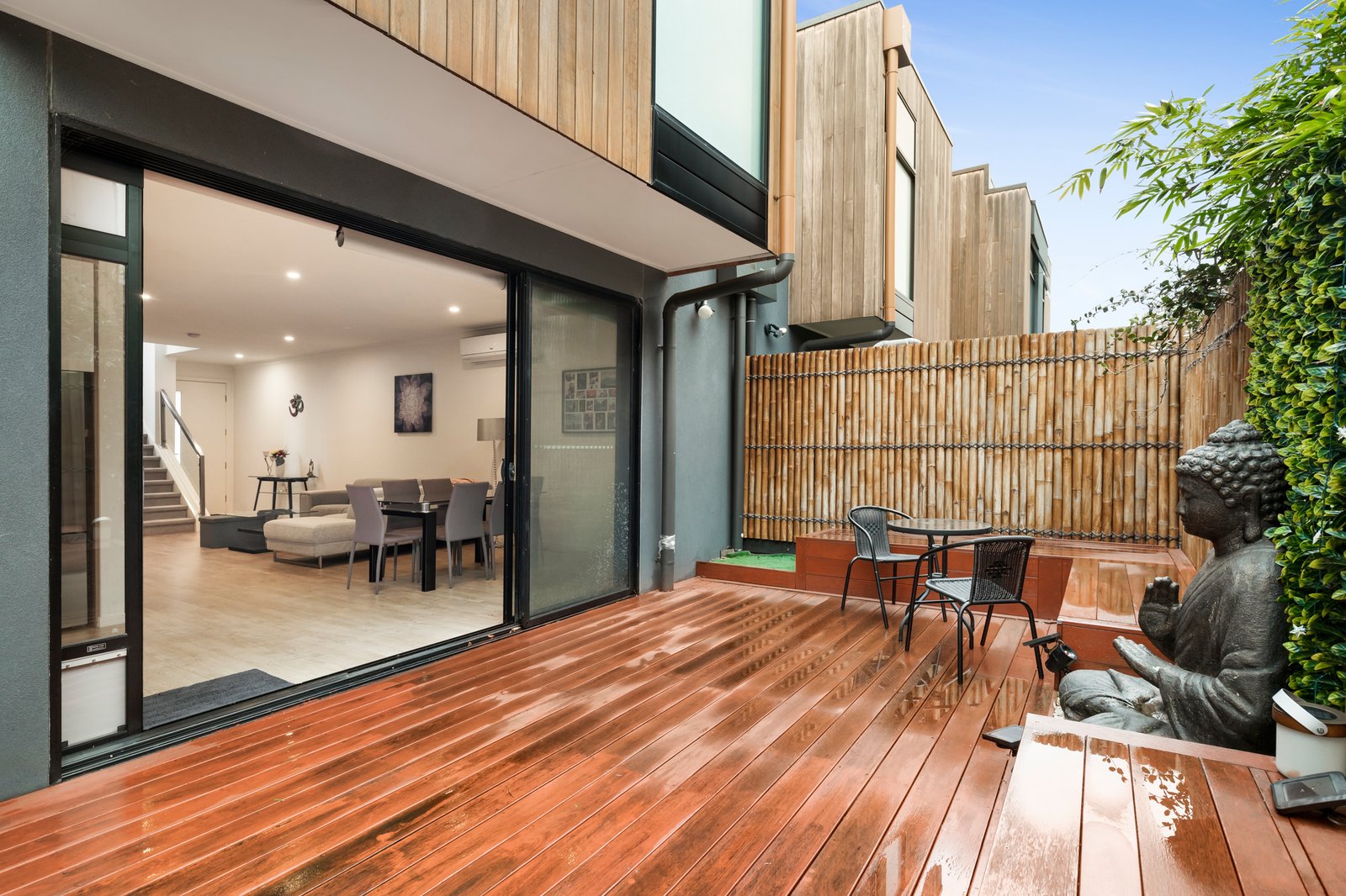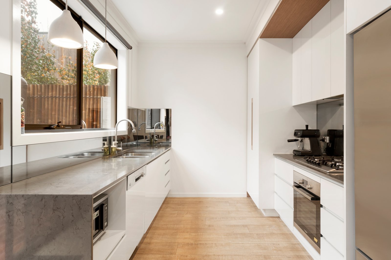 The beautifully designed home offers open plan living downstairs with stunning kitchen complete with European stainless steel appliances , integrated dishwasher and caeser stone bench tops and lots of cupboard space. A glass sliding door leads out to the fully decked alfresco entertaining area . Upstairs there are 3 double bedrooms, main with walk in robes, ensuite with double vanity and large balcony . Sparkling main bathroom with bath.