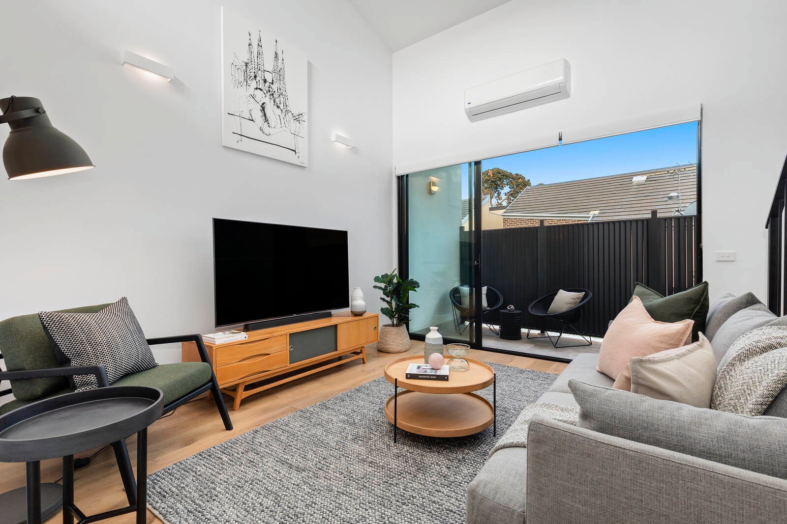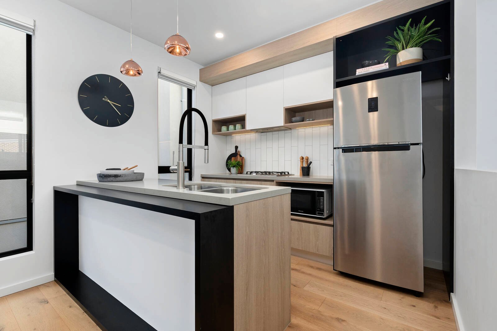 Taking design cues from this tightly-held group’s eclectic recycled brick and render façade, and architecturally designed by renowned architect Moull Murray, this sophisticated spaciously light-filled home is curated with a leading-edge - with German appliances for the cutting-edge kitchen, custom cabinetry for the subway-tiled bathroom and ensuite, and a cool mix of concrete-style stone, textural Oak flooring, and matt-black ironwork.