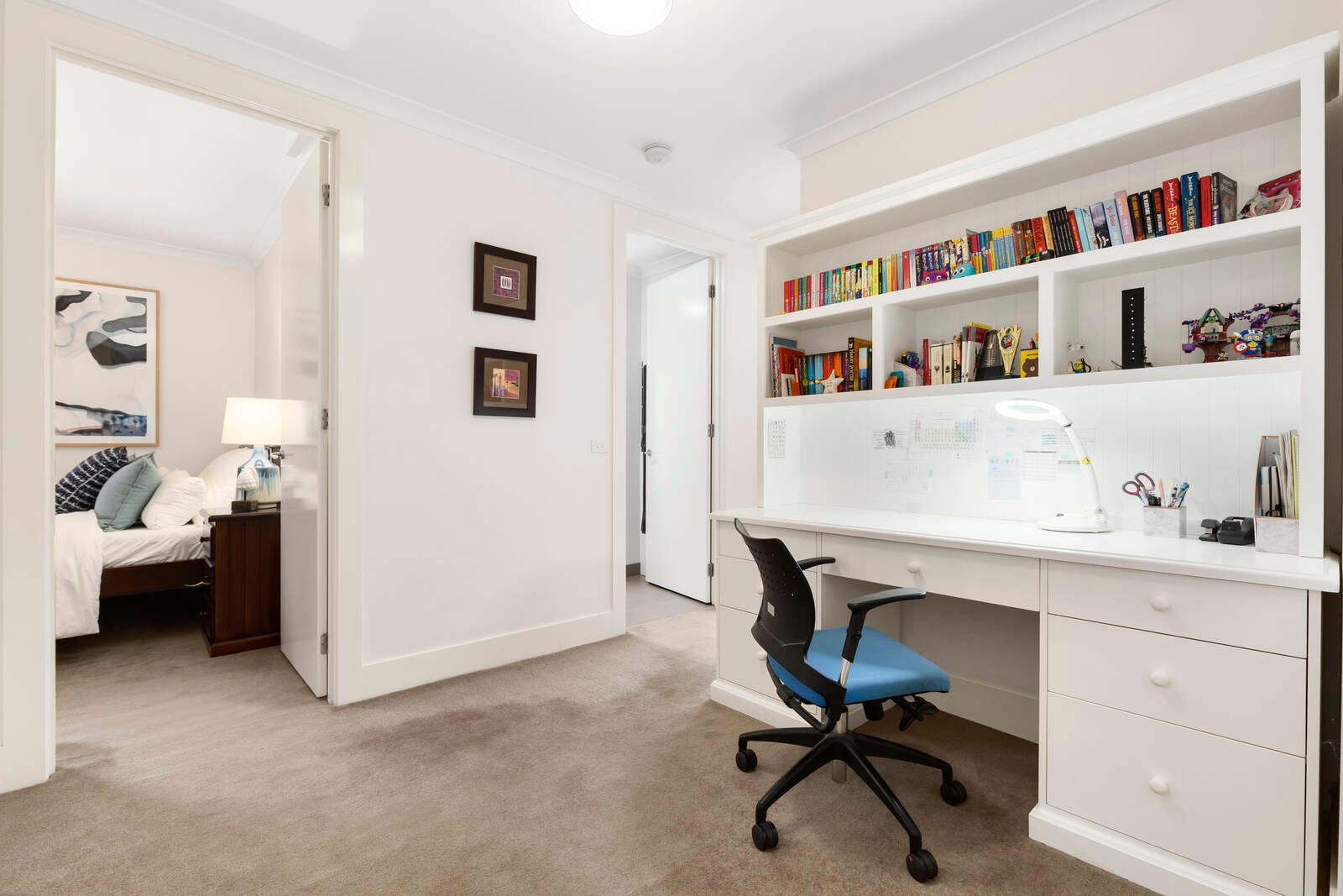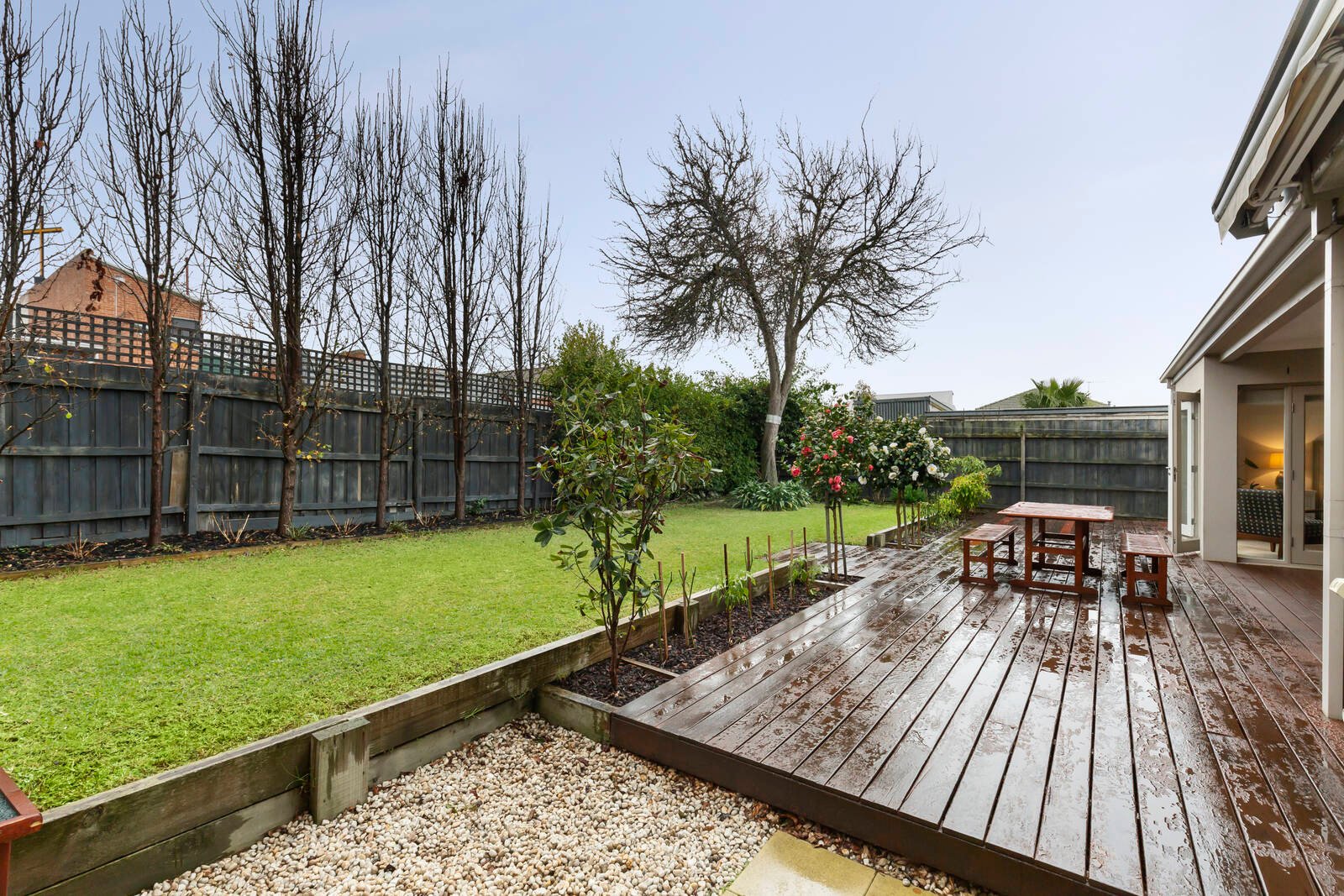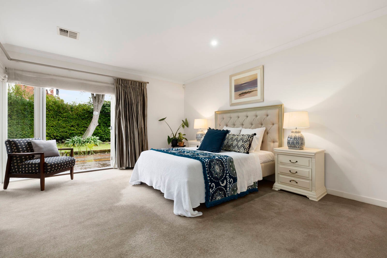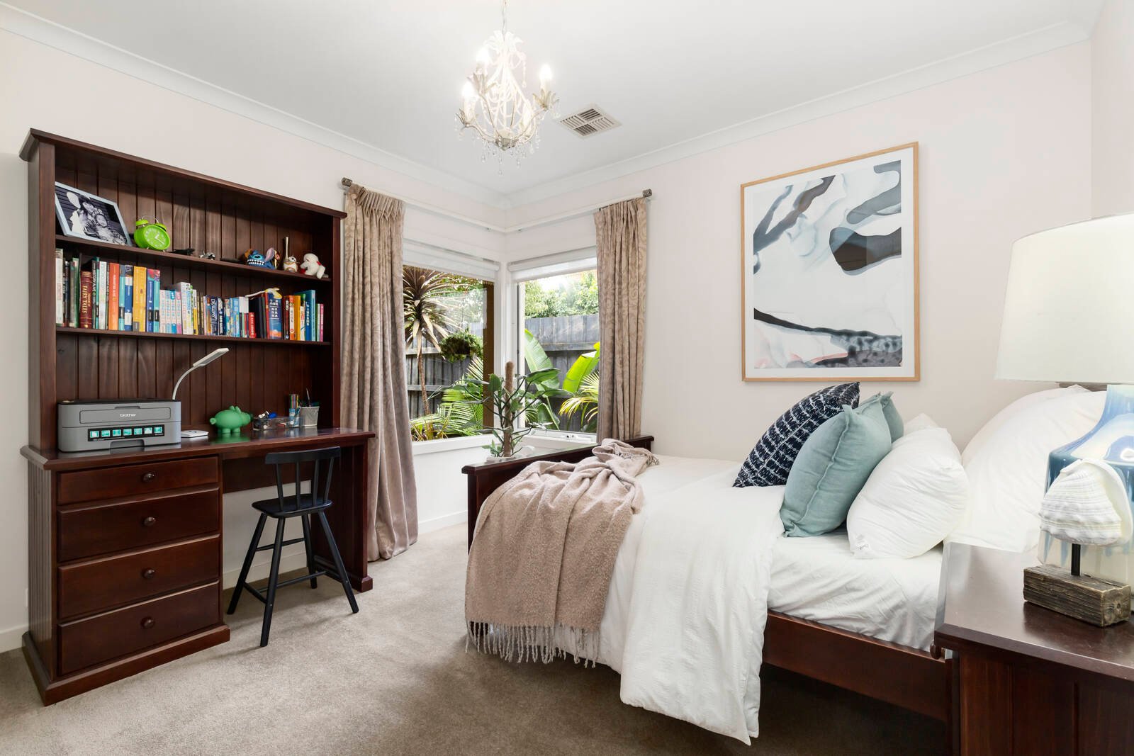 With a feature fireplace acting as a divider in the open plan living area, and the addition of a home cinema, butler’s pantry, and lavish parent’s retreat with ensuite, this is a home that celebrates easy living with a sense of style. French doors highlight the indoor-outdoor integration, with plenty of deck space framing the west facing rear garden.