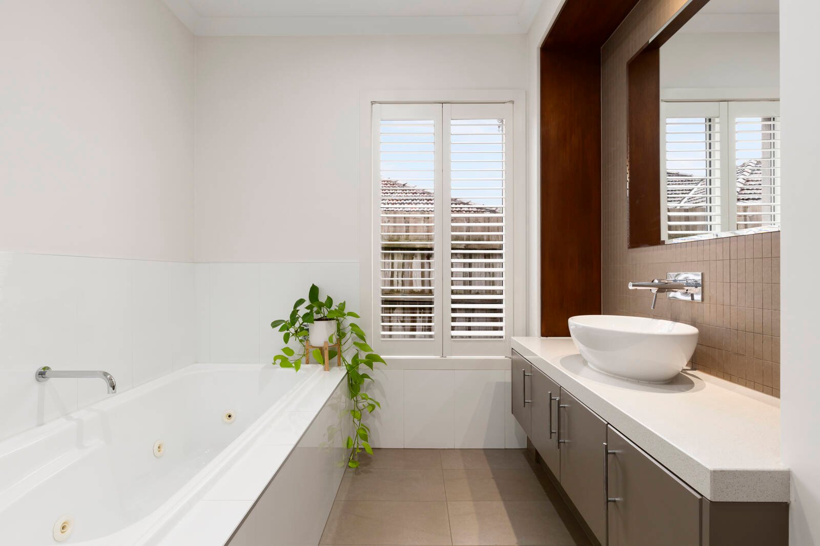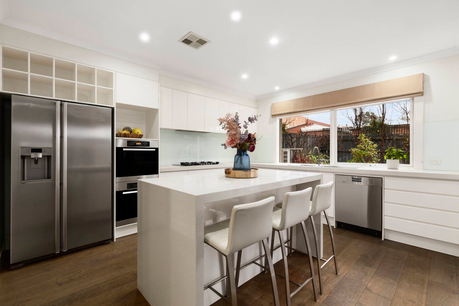 The quality of the features and finishes are evident throughout –including luxury stone bench tops, Villeroy & Boch bathware, a regular shaped spa bath, Miele kitchen appliances and the resort style elegance of plantation window shutters.