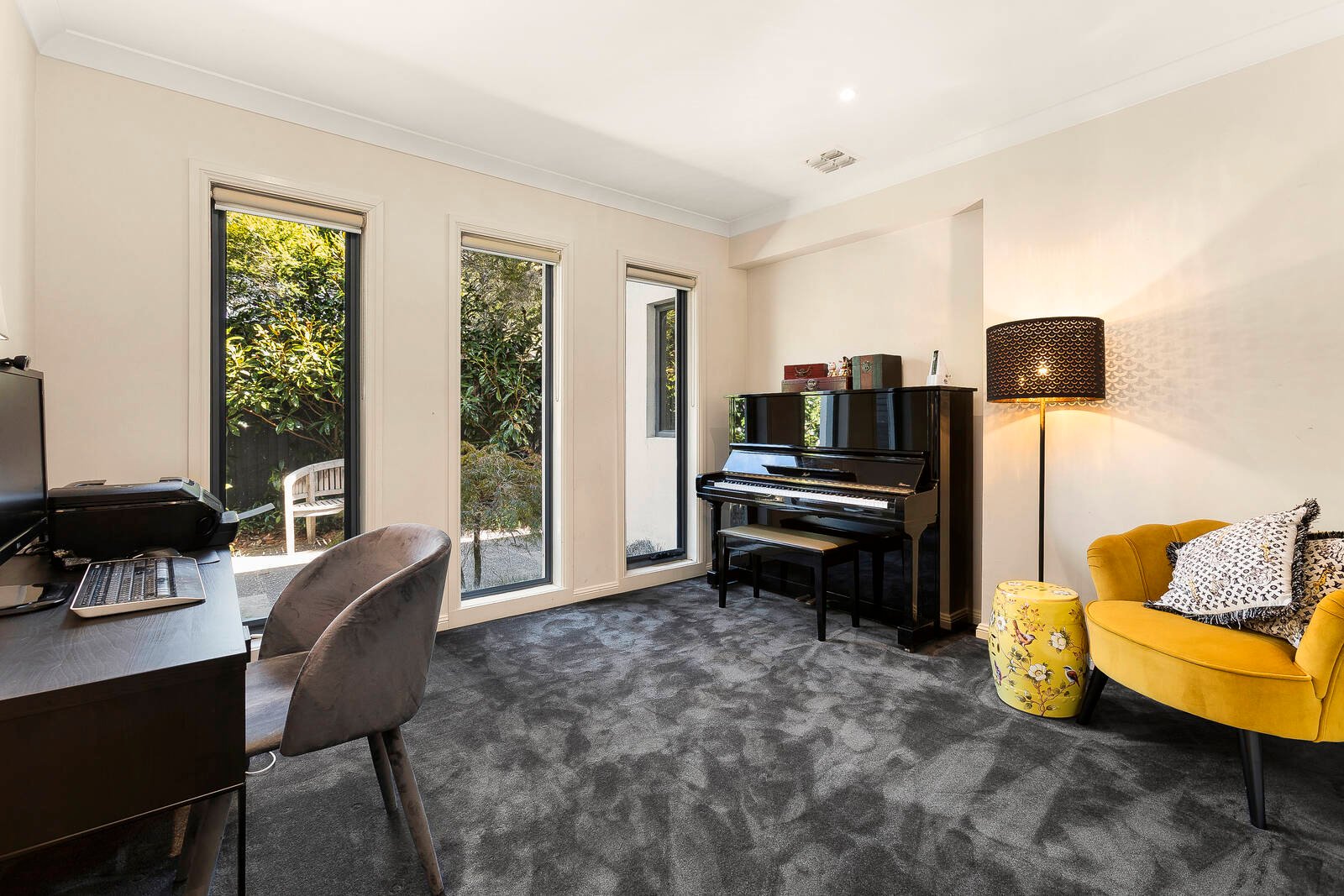 Zoned to create family harmony, this brilliant abode features a light-filled open plan living and dining area with spacious stone kitchen, (Westinghouse/Asko appliances) and an adjoining sitting area that adds warmth to the setting with its gas log fire; a super-sized downstairs bedroom with robes, a peaceful study with garden outlooks, light-filled bathroom, separate toilet and a functional laundry with walk-in linen closet and drying racks.