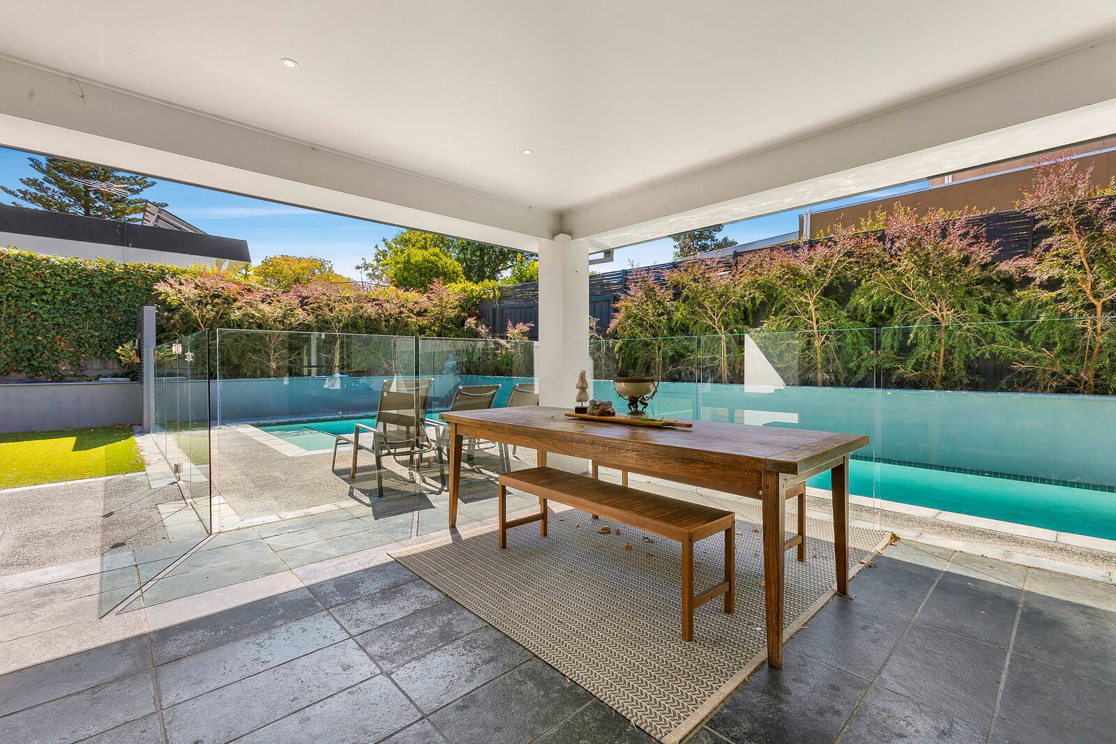 The private first floor is home to a neat retreat, a gorgeous main bedroom with walk-through robes and a sparkling spa-ensuite, 3 further bedrooms with walk-in robe/built-in robes, a family bathroom and an additional toilet. A series of sliding doors open to an undercover alfresco dining terrace that overlooks the sublime solar-heated pool, while a separate pavilion provides a shady retreat for poolside relaxing and entertaining.