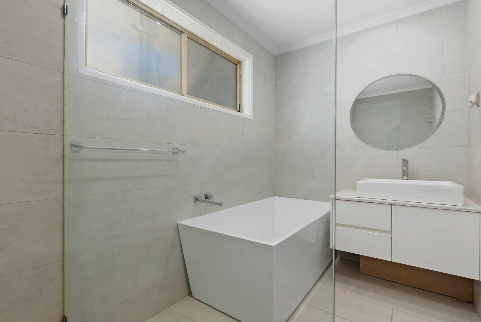 Peacefully zoned, two good sized bedrooms, both with BIRS, share a central bathroom with oversized shower, luxury freestanding bath and separate WC. A full-size laundry with external access completes this delightful package along with oak colour floorboards throughout, ducted heating, split system heating & cooling (master & living), remote control car garaging & additional off-street parking for two cars.