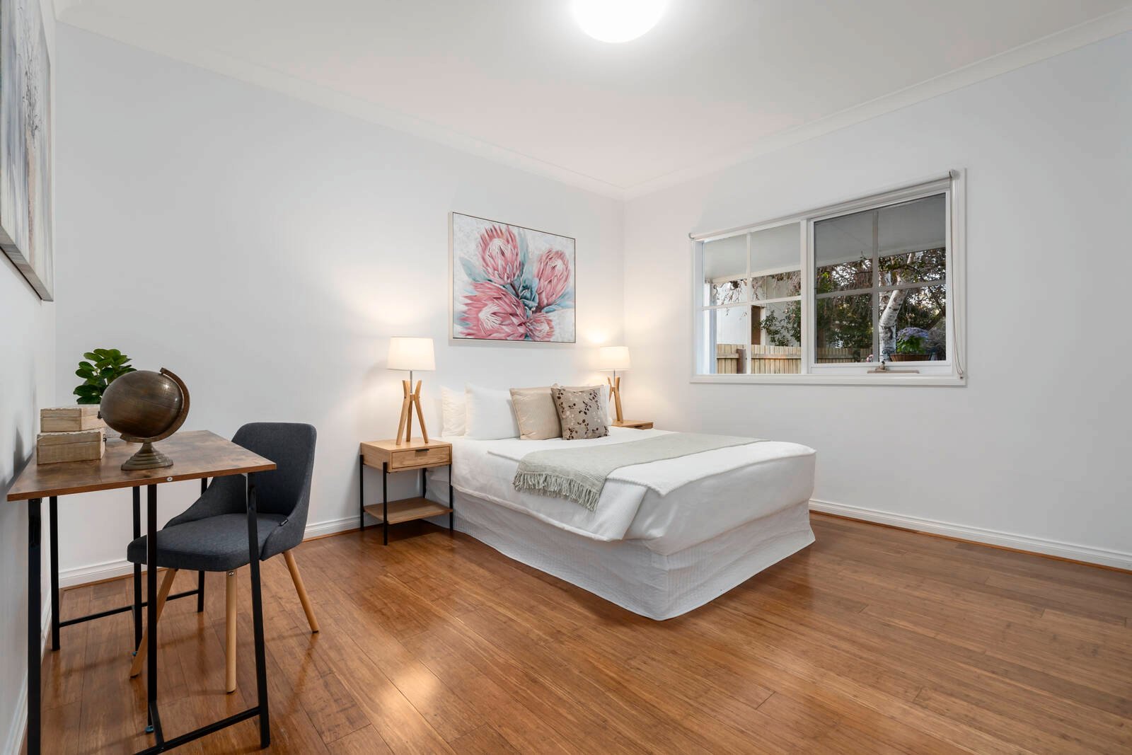 Freshly re-styled with two glossy new fully-tiled bathrooms (one a sleek ensuite for the vast fan-cooled master), this reverse-cycle air-conditioned and centrally heated home is timeless by design with a stylish Bosch and Blanco appliance kitchen, bespoke built-in robes & warm bamboo floors. Opening out at every turn to wide decking and low-maintenance gardens, there’s an all-weather Vergola canopy for the entertainers’ al fresco zone, a pretty veranda for an enchanting entry, and a lush landscape including cook’s herb garden and a lemon tree!