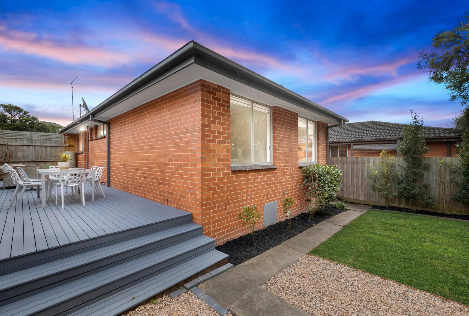 Quietly tucked away to the rear of a boutique trio, this beautifully updated single-level villa is sure to capture the hearts of first home buyers, downsizers and savvy investors. Welcomed by striking timber floors and glorious natural light, inviting interiors reveal open-plan living/dining, stunning kitchen appointed with stone surfaces, 2 robed bedrooms and immaculate bathroom. A large deck meanders to a landscaped courtyard providing a quiet setting to relax and entertain, while split system heating/AC and single carport enhance lifestyle comfort. Desirably positioned within walking distance to MWSC (catchment), Syndal South Primary, Huntingtower, Valley Reserve and minutes to Wesley, local shops and transport.
