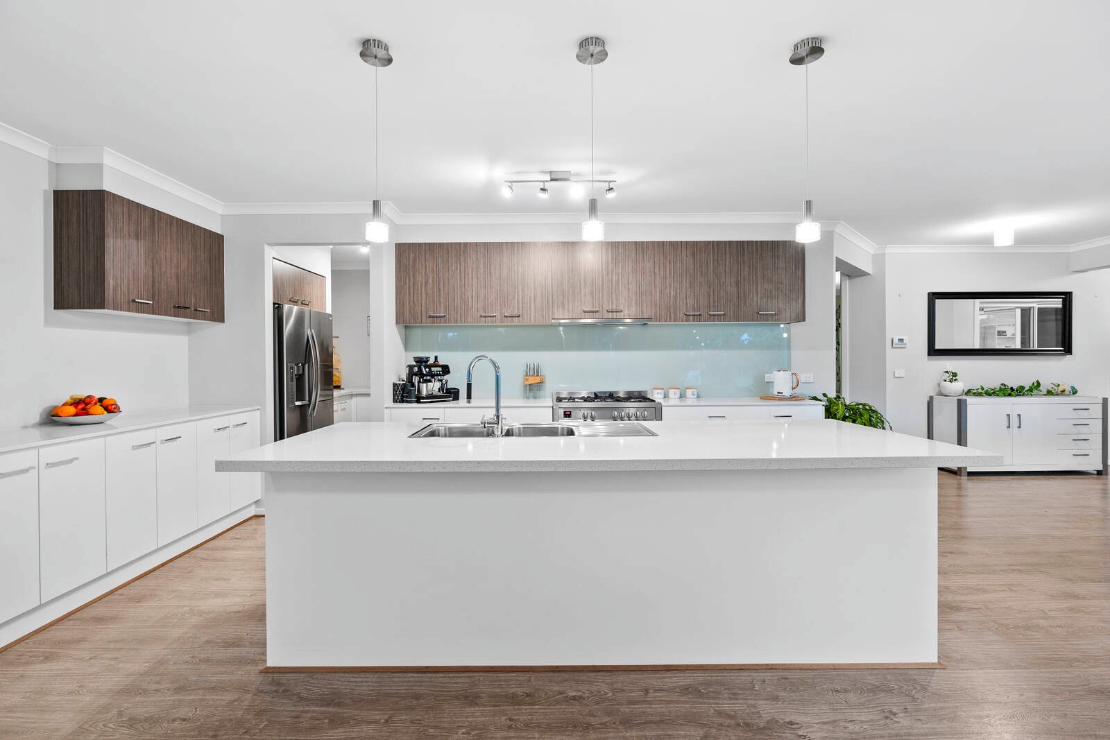 Less than six years old, the home creates a spacious family retreat on approx. 35 squares. High ceilings grace the elegant interiors, while four living zones ensure you'll never run out of room again. The front lounge creates a cosy ambience with a wood heater, while the retreat offers versatility as a study or kid's play space. The open plan living/dining/kitchen zone establishes the heart of the home, where you can open the sliding doors onto two separate alfresco areas for superb entertaining options. The kitchen showcases stone benchtops, a walk-in pantry and stainless steel appliances (dishwasher and 900mm oven/gas cooktop).
