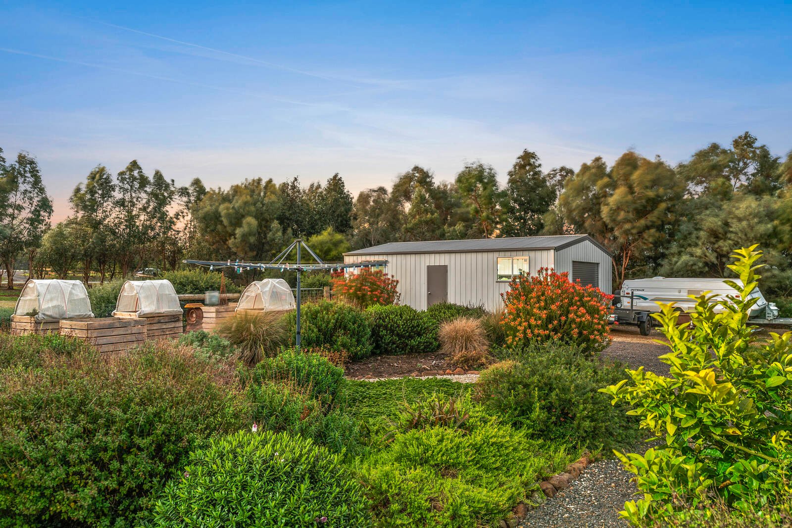 Charming gardens surround the home, creating private pockets that entice you to sit back and soak up the sunshine. The swimming pool will inspire many fun-filled family days, while the firepit zone is perfect for relaxed nights under the stars. Ample parking includes a remote double garage with internal access and a drive-through work shed (with separate power). The self-contained bungalow is perfect for family members who enjoy their independence. Your dream country lifestyle is complete with raised veggie gardens, citrus trees and two secure yards for pets or chooks.