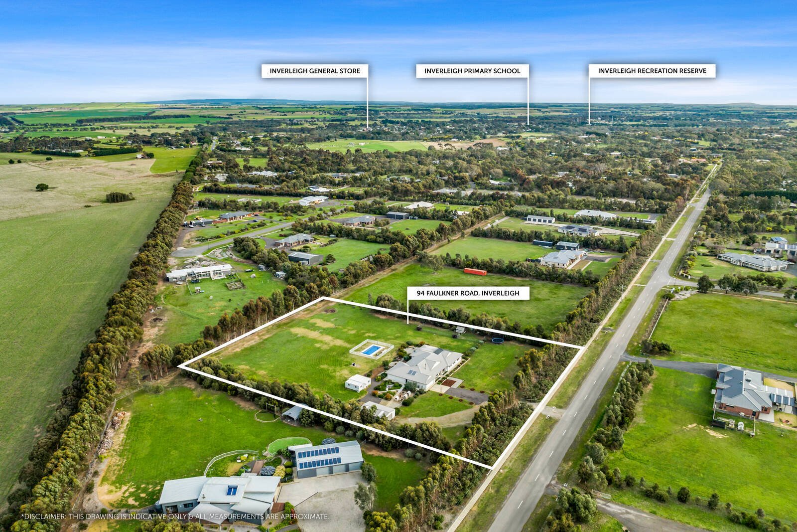 A short drive will find you in the town centre, which is home to shops, the Inverleigh Hotel and Inverleigh Primary School. Local sporting grounds and the Inverleigh Golf Course are also within easy reach. An approx. 30-minute drive will place you in the heart of Geelong, while easy Ring Road access keeps you connected to Melbourne.