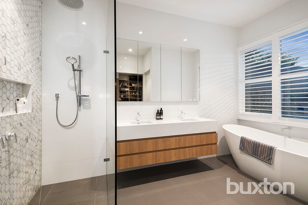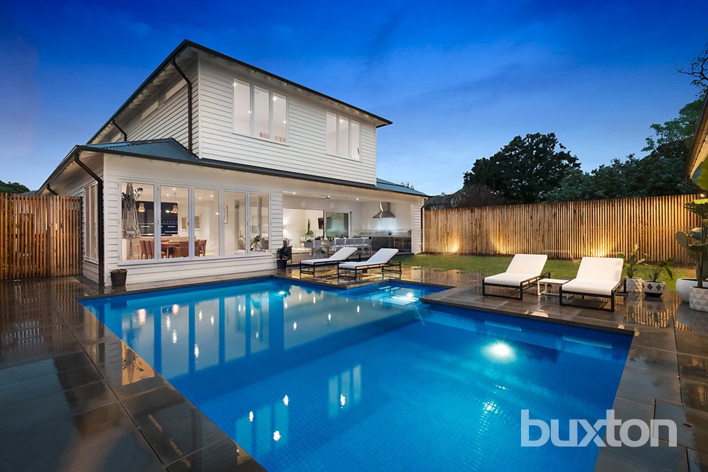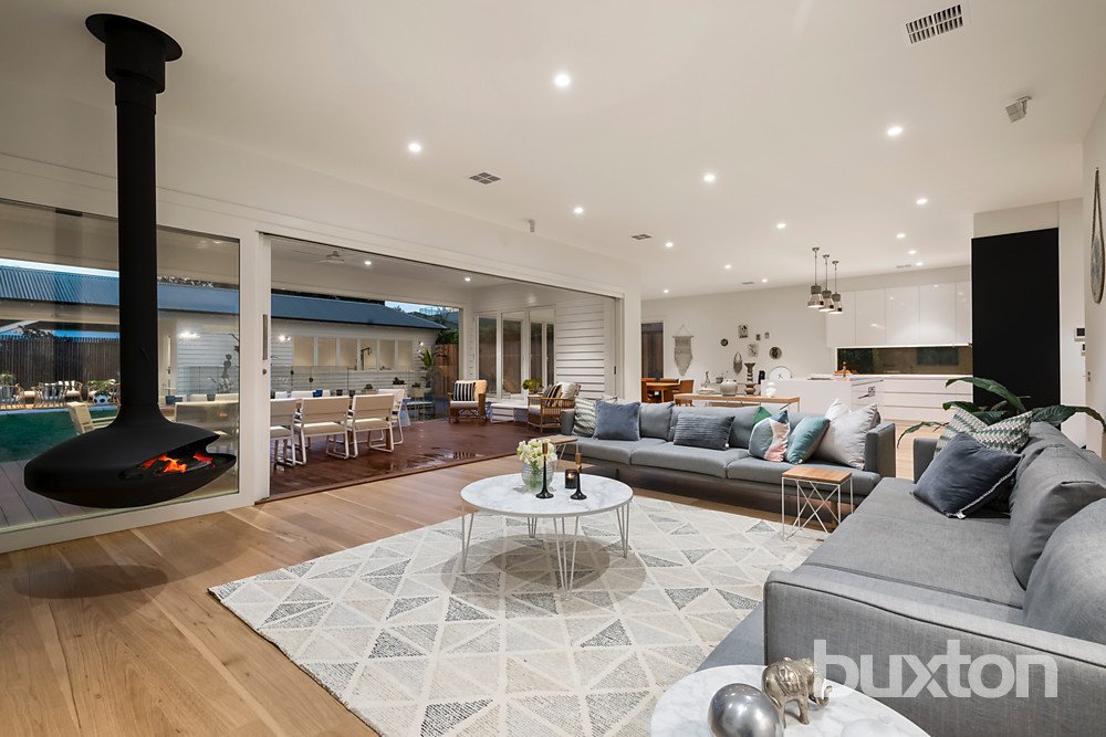 Configured for a modern family with formal living on both levels, the home zones parents in a ground floor master-suite (dressing room), kids up high in a first floor retreat and a big open-plan featuring window walled dining and a suspended fireplace for the widespread lounge.