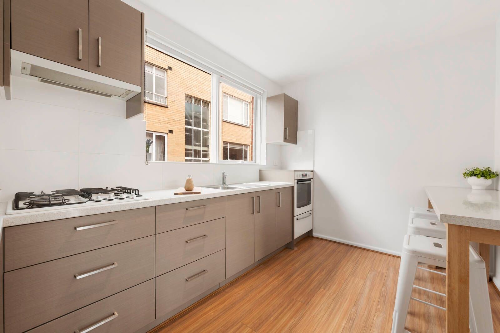 Set on the first floor of this proudly maintained 1970s complex, the home's large windows introduce fantastic natural light throughout. A welcoming entrance hall opens onto a North-facing spacious living/dining area and private balcony. The adjoining kitchen offers ample cupboard and bench space, gas cooking and custom built in bench space with bar stools.