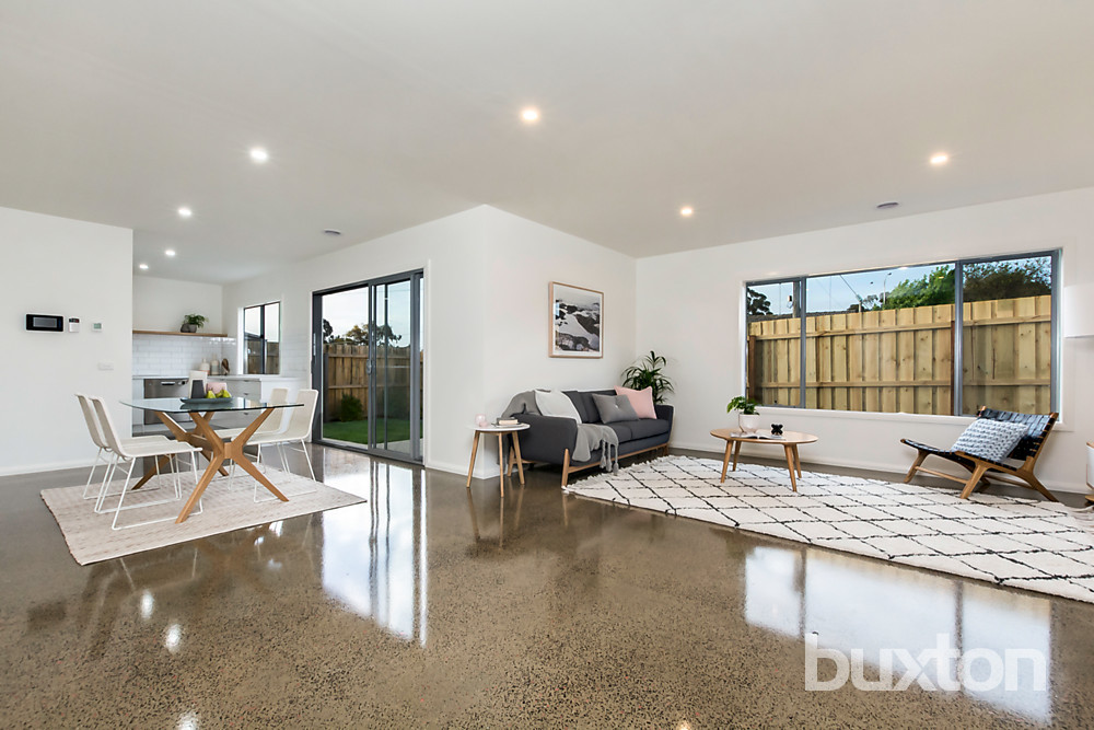 Designed by one of Geelong's leading architects, James Deans & Associates, this house takes easy living to a new level. Sophisticated with a well thought out design, the search for a perfect home without compromising on style & size is over. Situated on its own title, a truly unique property that stands out and presents itself as one of Belmont's best. As you enter the home you are greeted with a brightly lit, large open plan living area that's north facing, polished concrete floors that leads to the large chefs kitchen complete with stone bench tops, soft close doors and quality appliances. Stylish large stacker doors provide a grand entry to the paved alfresco area, perfect for entertaining or relaxing in the all day sun. Comprising two generous sized bedrooms, master with full ensuite and custom WIR. Both master and main bathrooms continue the luxe feel with polished concrete floors and stone bench tops. Built with precision this property goes beyond standard and will cement its place as one of the streets best properties. Extras include 6 star energy rating, central gas heating, intercom & security system, abundance of storage and cupboard space, up market fixtures and fittings, free standing bath, deadlocks on all external doors, lockable windows throughout, solar hot water system, internal access from garage, remote garage door, fully landscaped with low maintenance garden. All within walking distance to schools and amenities with 5 minute drive to city centre and Epworth. Don't miss your opportunity to secure this terrific opportunity. Inspect today.