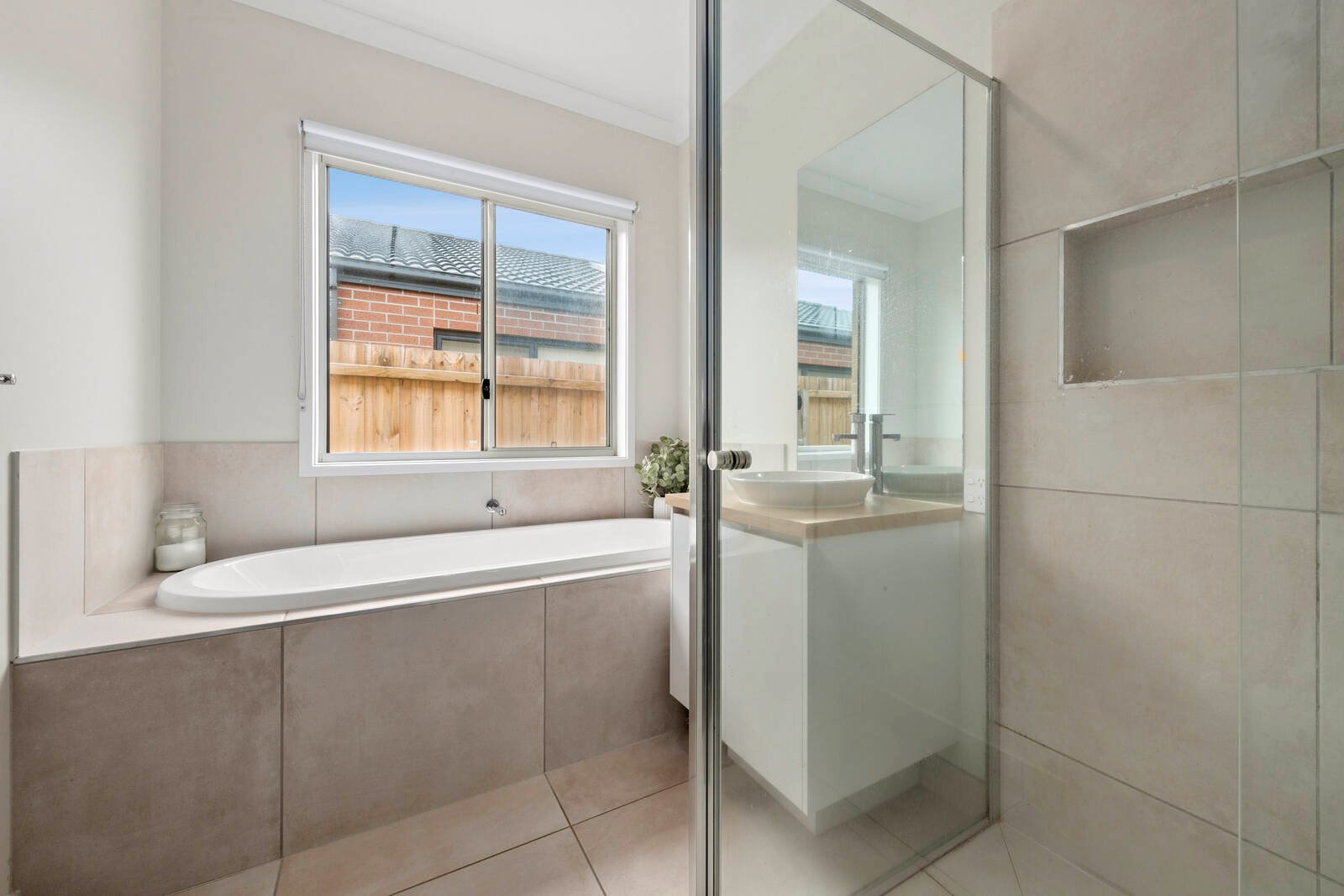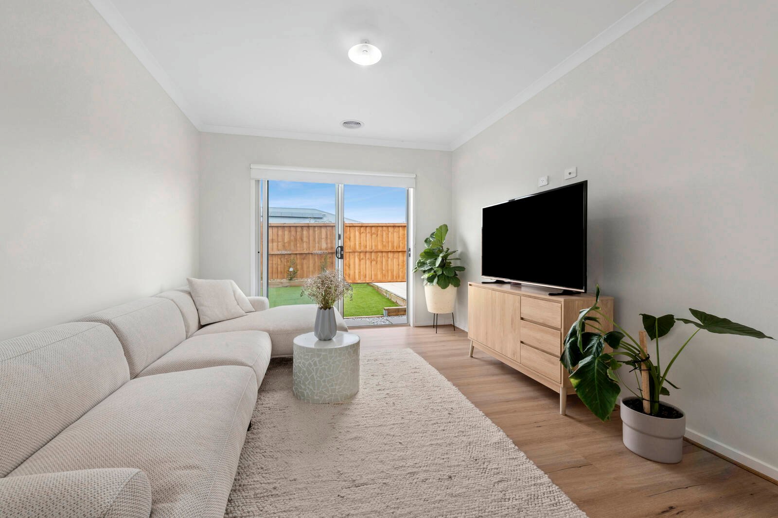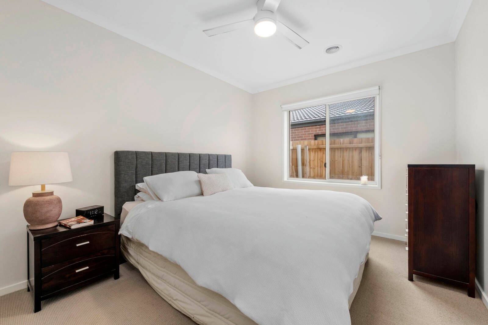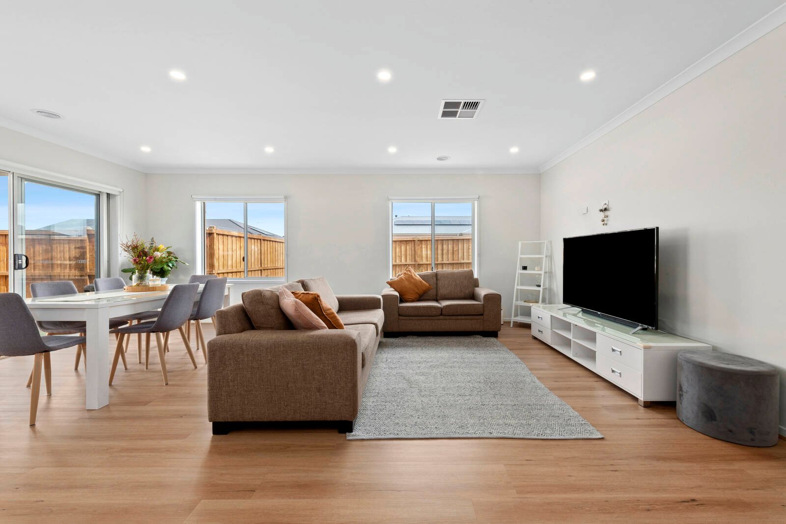 The main living consists of an open plan kitchen, dining and living room with a great connection to the outdoors. The high-end kitchen features an island bench, stone benchtops, stunning herringbone tile splashback, quality stainless steel appliances and a generous walk-in pantry. Positioned to overlook the dining and out to the alfresco, this is a fantastic layout for those who love to entertain. A second living area offers a quiet space to retreat from the main traffic of the home, relax, watch a movie or work from home. Central heating and evaporative cooling ensure the home is comfortable throughout all year round.
