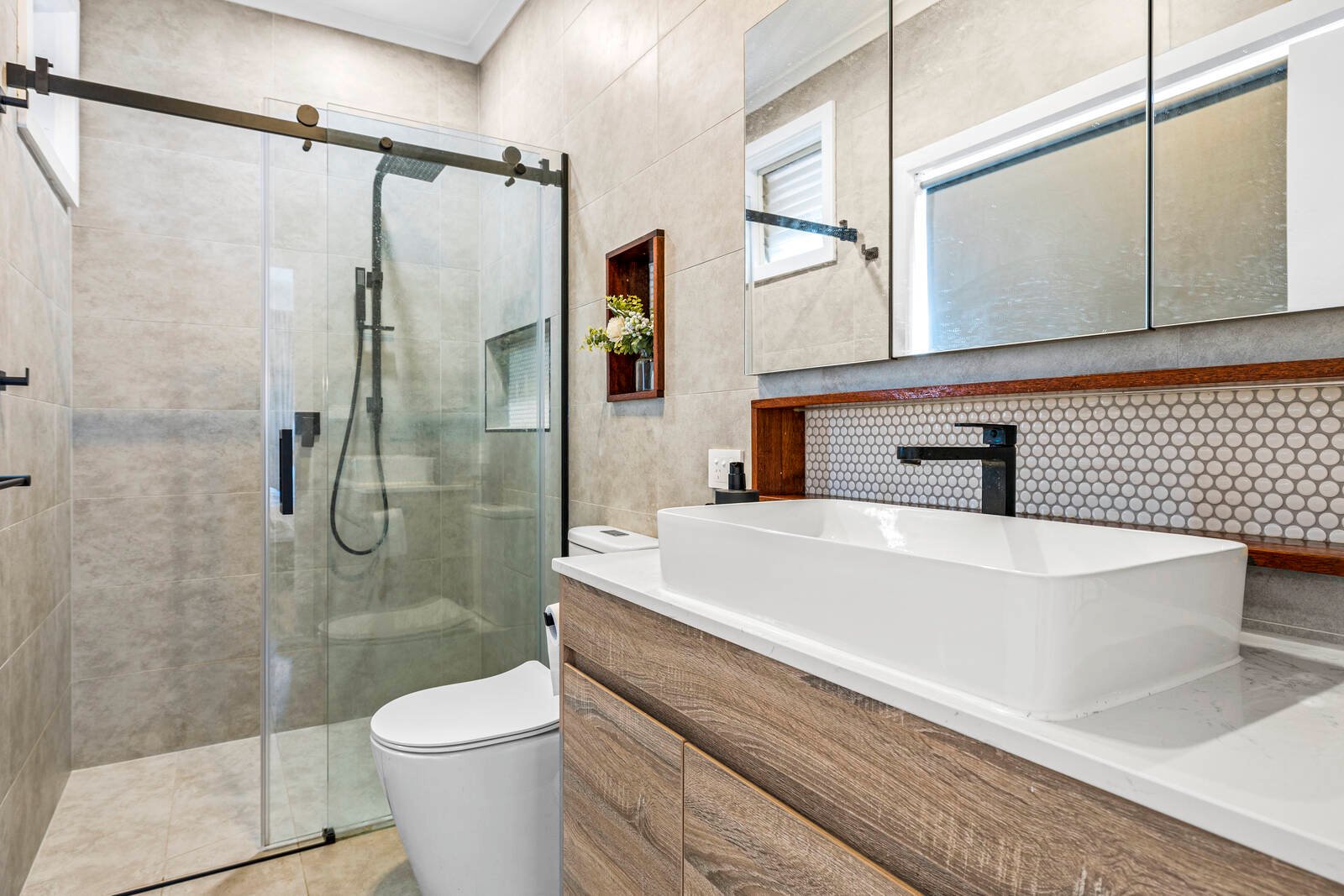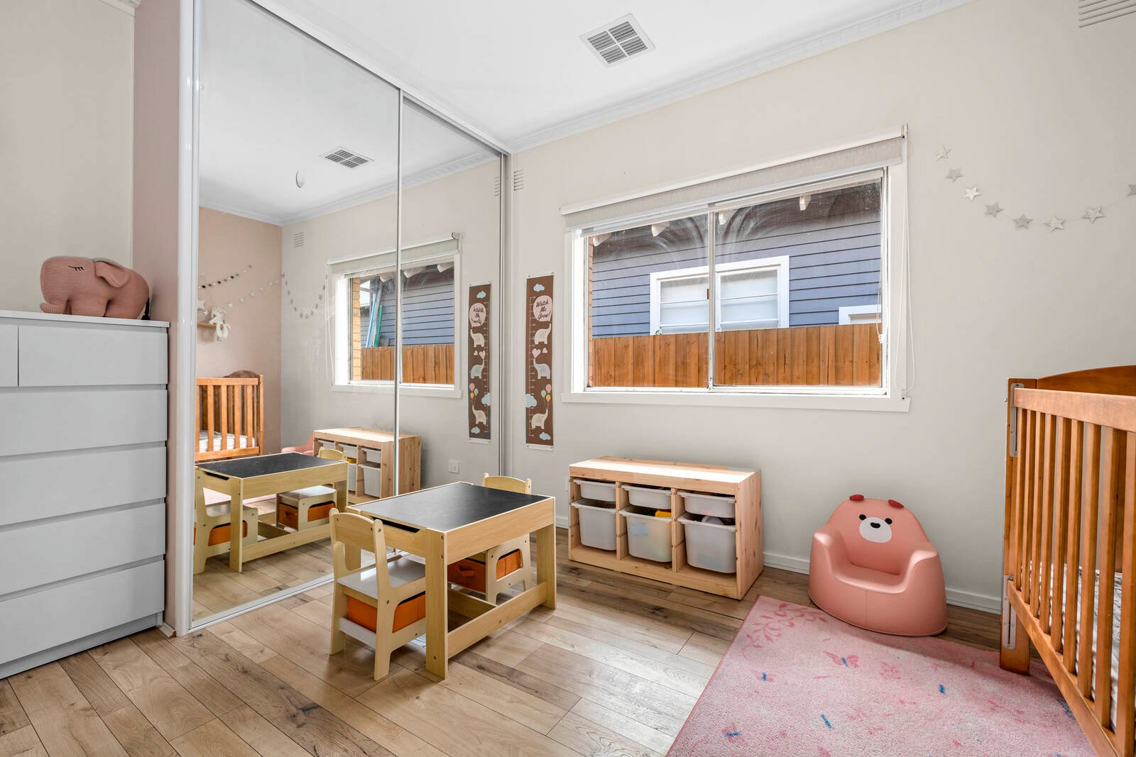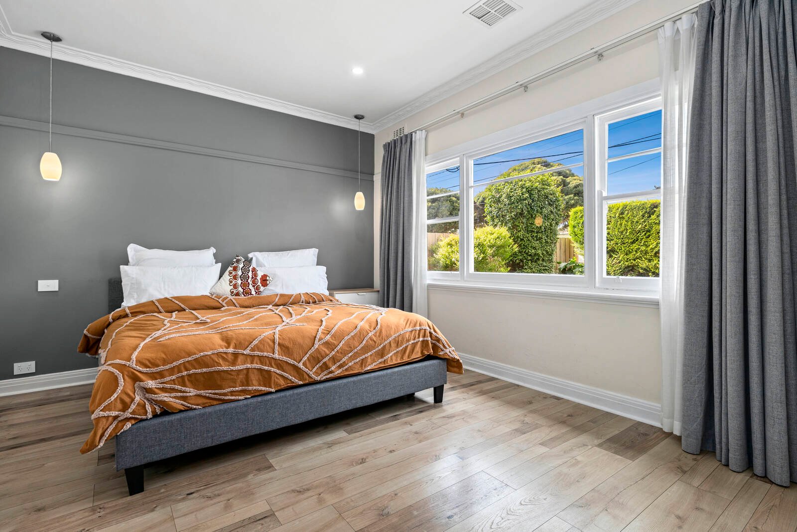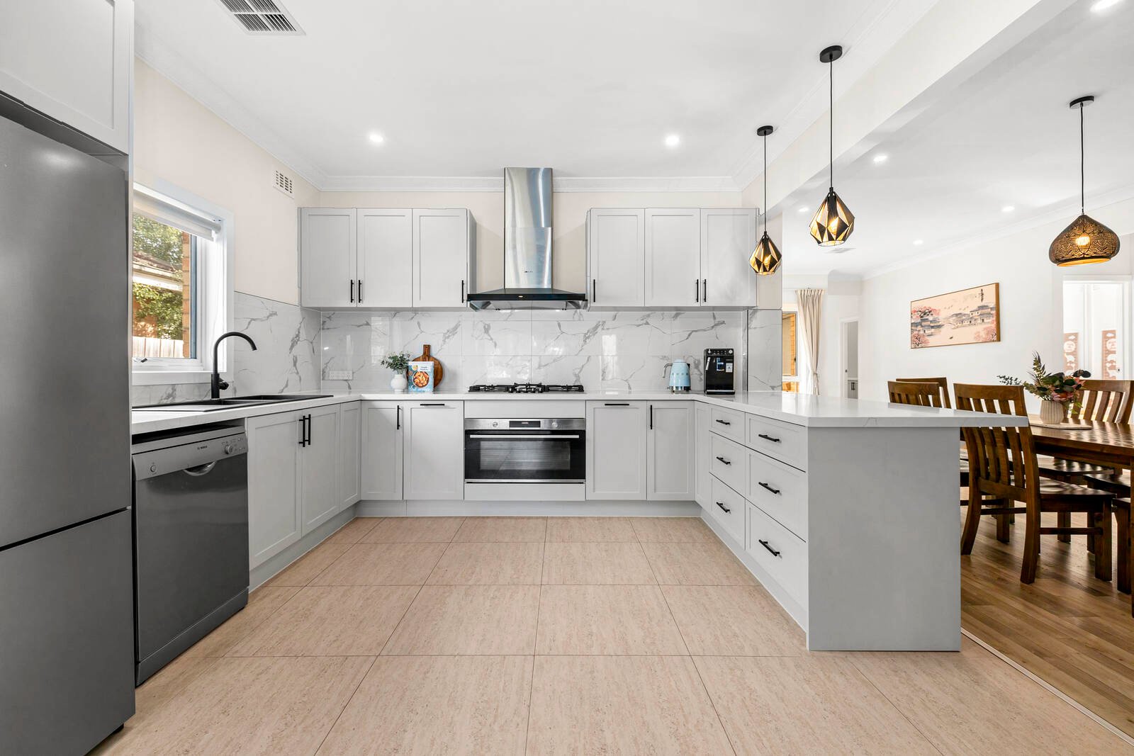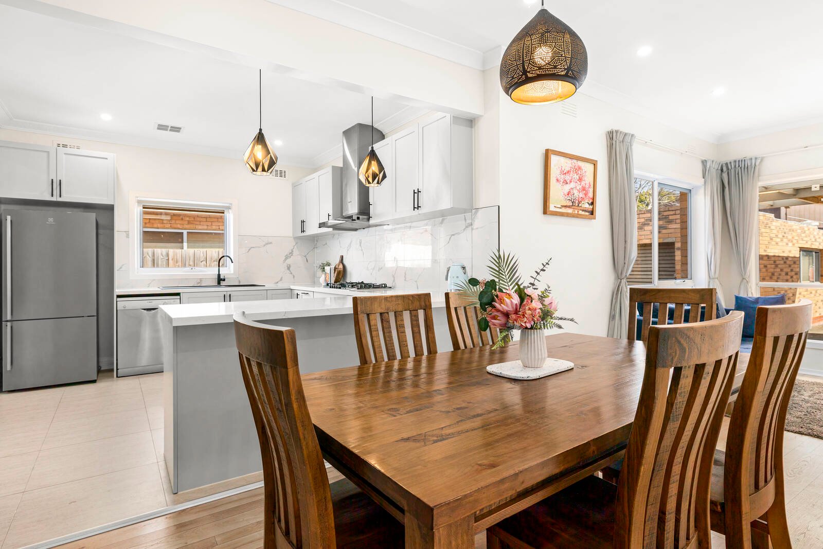 Immensely appealing, beautifully renovated and appointed for modern living, this contemporary brick veneer residence offers magnificent family spaces hidden beyond a private, high-hedged frontage. Filled with glorious natural light and updated with a chic vibe, a captivating sense of space is amplified by a sun-drenched lounge, flowing through to a bespoke kitchen (featuring stone benches, Bosch appliances and stylish pendant lighting) and adjoining family/meals area. 4 bedrooms all of impressive proportions are all fitted with BIRs (main with fully-tiled ensuite, WIR and access to a private deck), while a sleek bathroom with freestanding bath, ducted heating/AC, 4 car garage and secure off street parking add further luxury to this low-maintenance retreat. Located in the heart of Oakleigh, a short walk to the train station, Sacred Heart Girl’s College, the buzzing delights of the shops, cafes and restaurants of Eaton Mall and close to Oakleigh Primary, Hughesdale Primary and Oakleigh Grammar.
