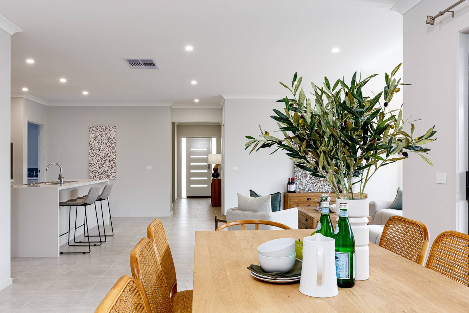 The home is heated with gas central heating and has evaporative cooling. There is also access from the dining area to an alfresco dining space, covered with merbau 140mm decking timber. While outside you will love the perfectly manicured garden and lawns.