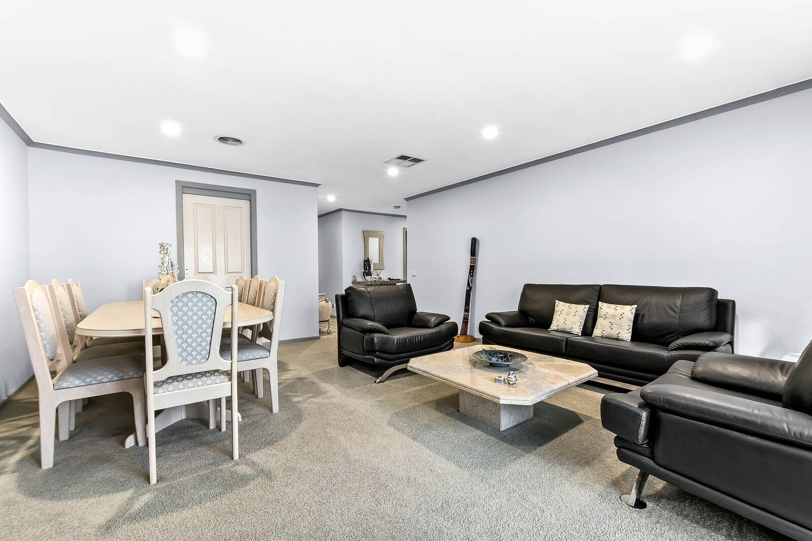 With a separate formal living room for entertaining or a quiet retreat, you’ll also enjoy a second, open-plan family lounge and meals area which features quality tiling and flows into a modern kitchen with gas cooktop and dishwasher as well as ample cupboard and bench space for storage and meal prep.