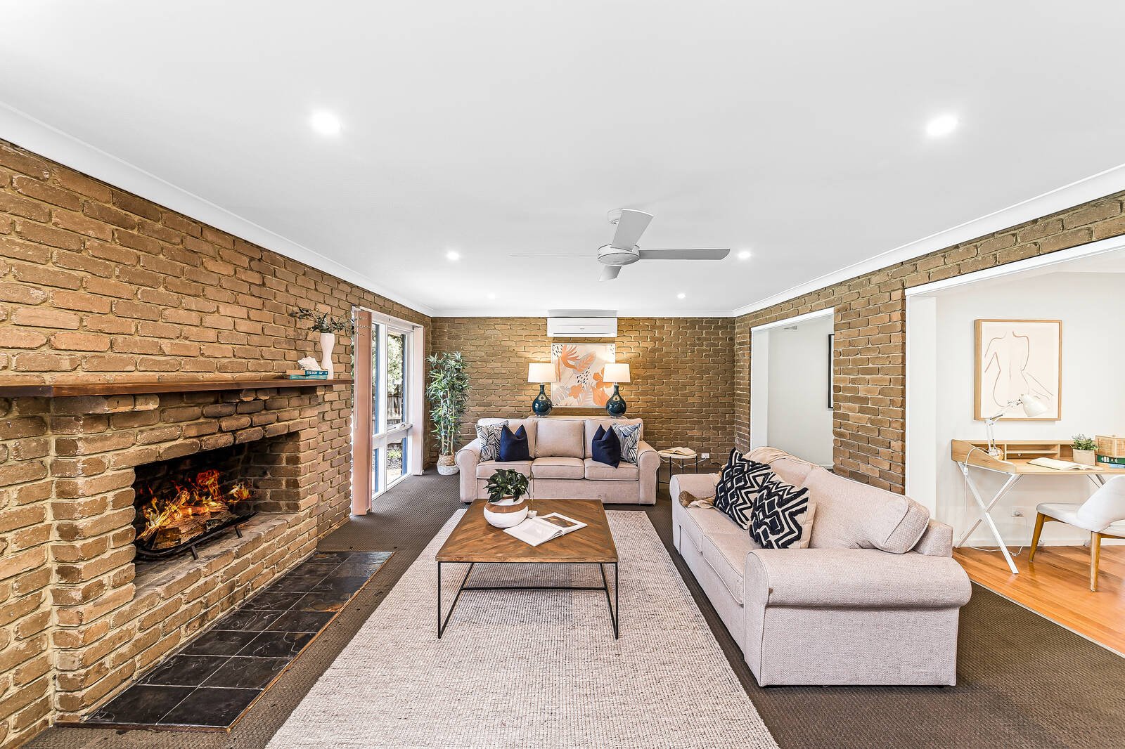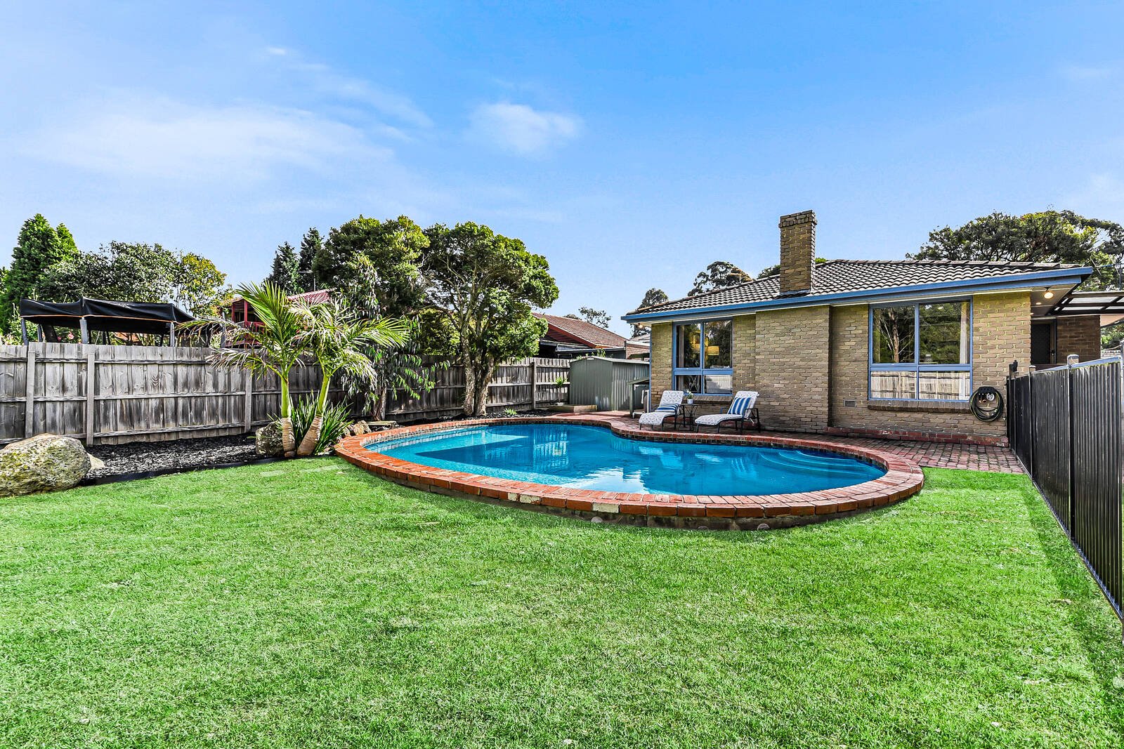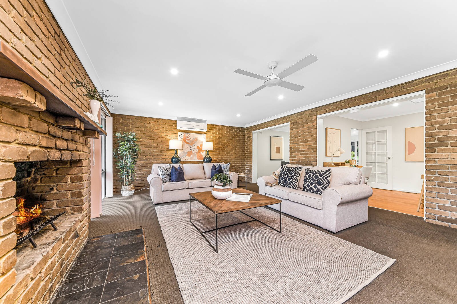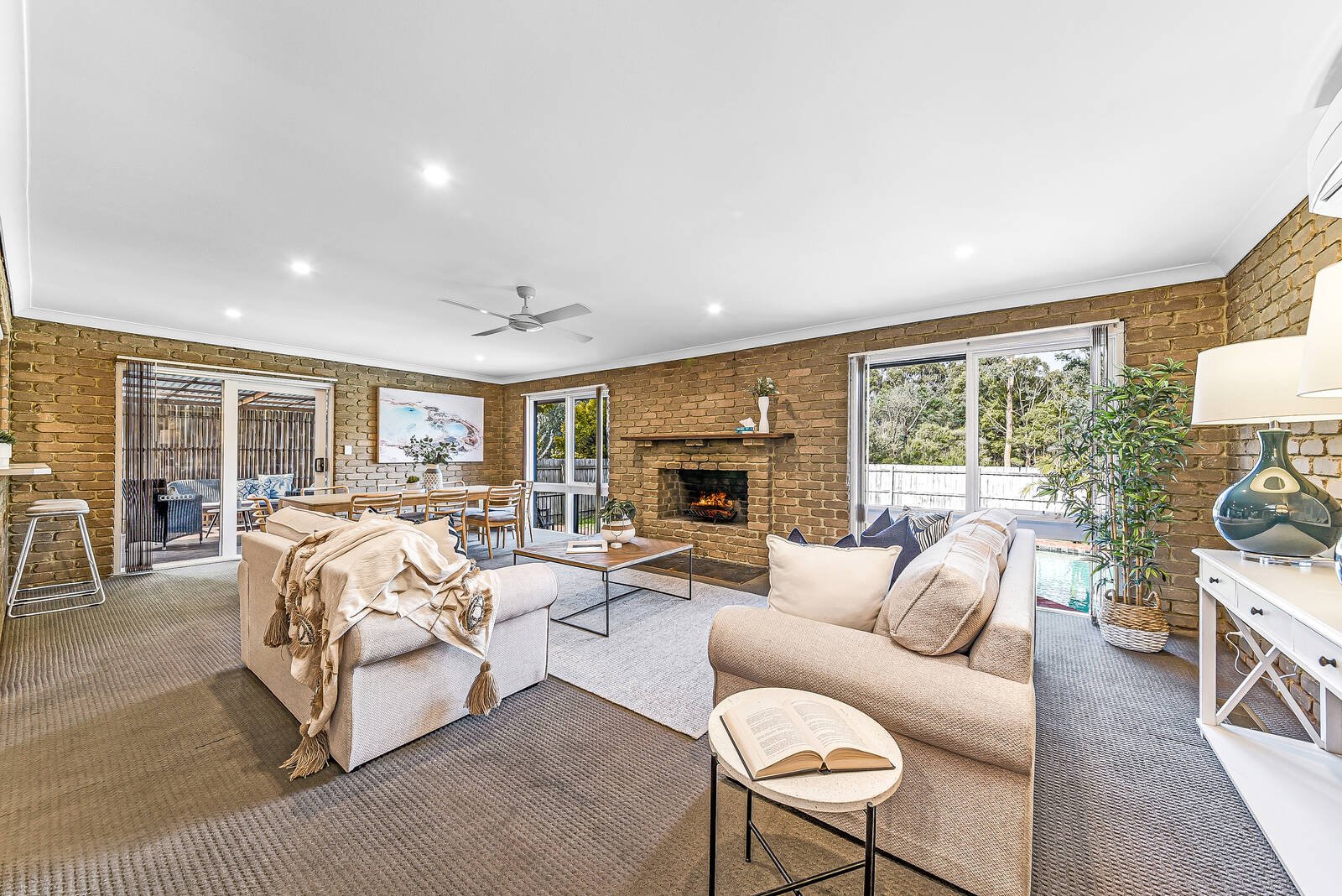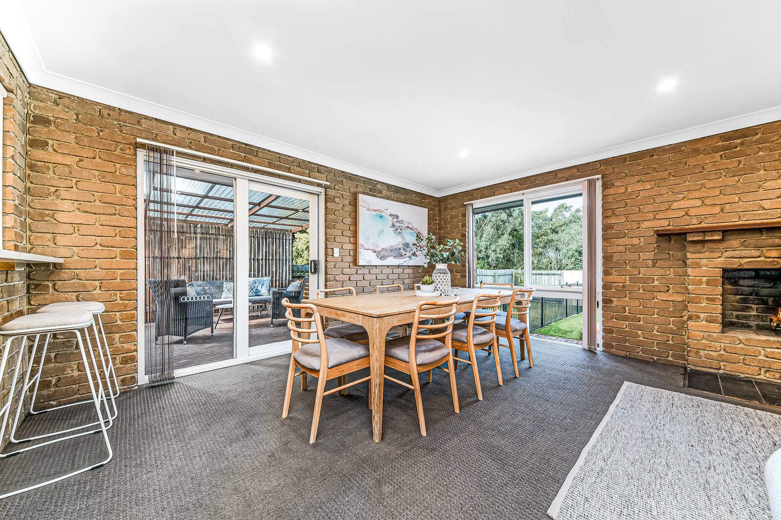 The home is divided into two abundant open-plan living and dining rooms, the first of which is accessed through a gorgeous set of French doors. Plush carpet, crisp paint, modern LED down lights and plenty of natural light coming through a corner window all combine to create a sense of ambience and relaxation. The rear living space vaunts exposed brick internal walls and large glass sliding doors that look out to the expansive tree-lined backyard, in-ground swimming pool and large wrap around partially covered entertaining pergola. A wood fireplace, AC unit and ceiling fan are excellent inclusions.