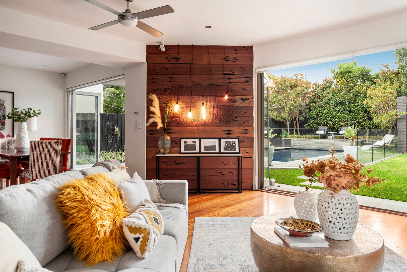 Warm and welcoming, the home’s unparalleled interiors still showcase authentic period detailing such as original herringbone leadlight which sit harmoniously alongside stunning natural elements including earthy Blackbutt flooring and exquisite feature walls crafted with reclaimed railway sleepers. A choice of living zones across the home’s two sun-swept levels will please families - especially the incredible open plan living/dining area where banks of bi-folds connect the home to its stunning surroundings. A stylish Miele-equipped kitchen is among the home’s highlights and the heart of this fabulous entertainer’s dream. There is also a fabulous outdoor kitchen with natural gas barbeque and built-in fridge for stress-free entertaining when the weather is warm.