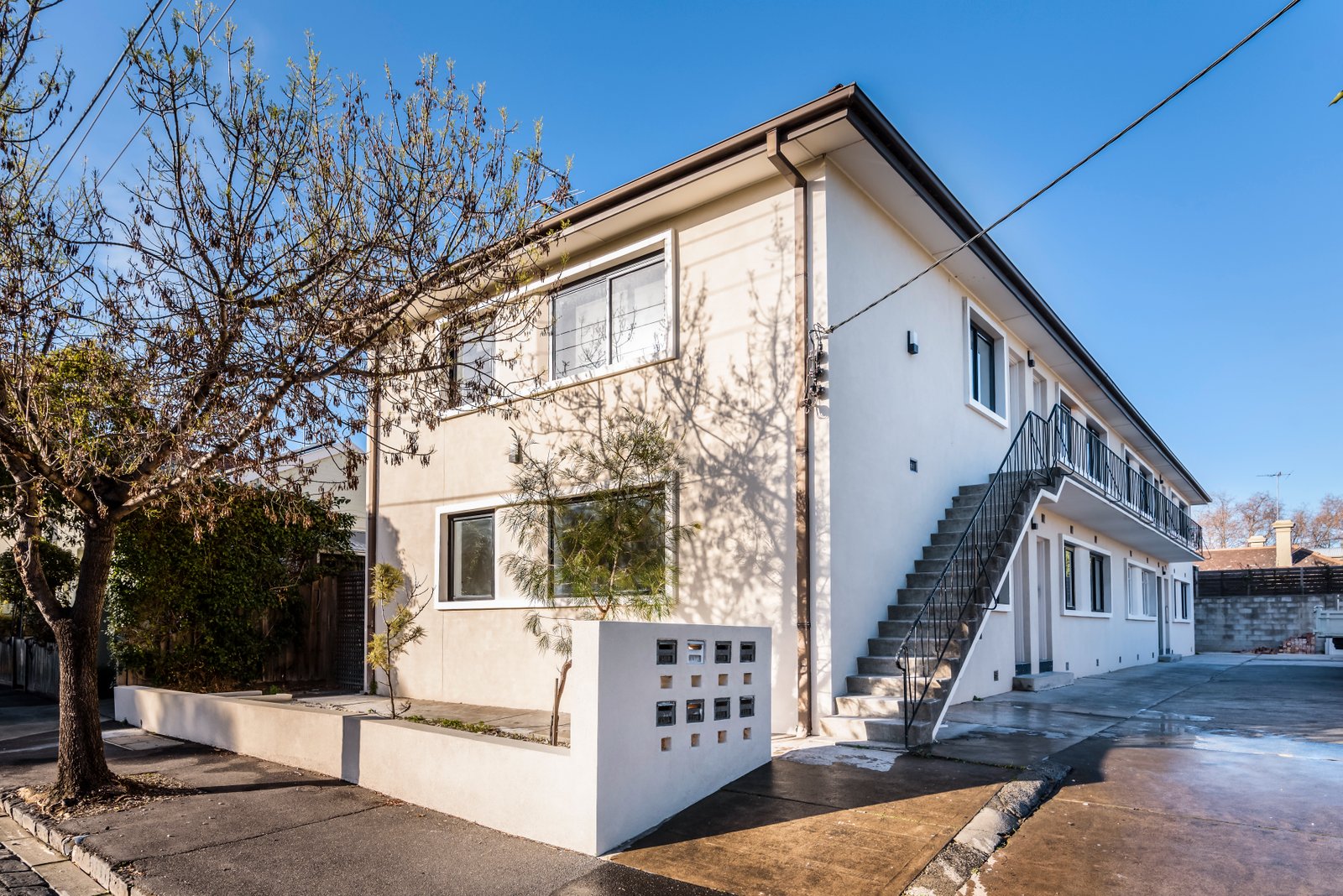 Filled with natural light, the home’s spacious interior comprises two bedrooms with built in robes, and a modern central bathroom. Add to this an open plan living/dining area with split system air conditioning and heating, and a modern adjoining kitchen. This kitchen features stone benchtops, tiled splashbacks, stainless steel cooking appliances, a dishwasher and a washing machine/dryer.