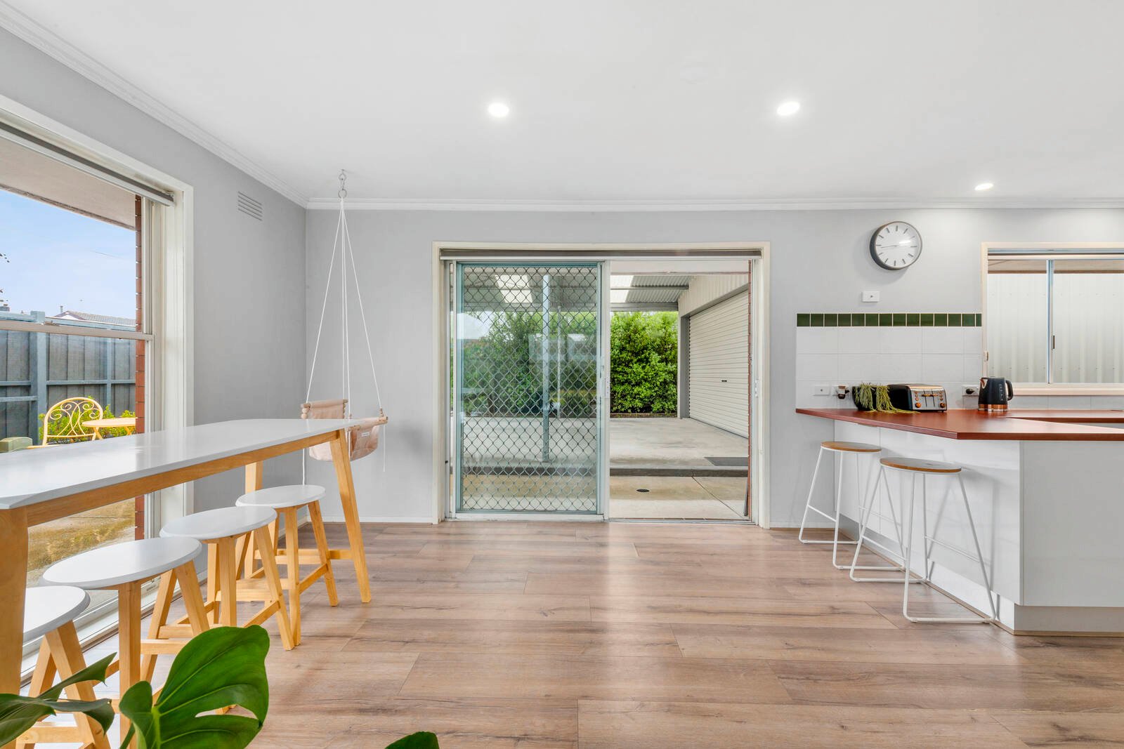 Hedges surround the spacious front yard, which creates a private and secure play space for young children. The sunny alfresco area inspires casual outdoor living, while the electric gate provides secure access to the impressive double garage. Featuring room for a large workshop and an adjoining double carport, this space will instantly appeal to tradies and DIY-lovers.