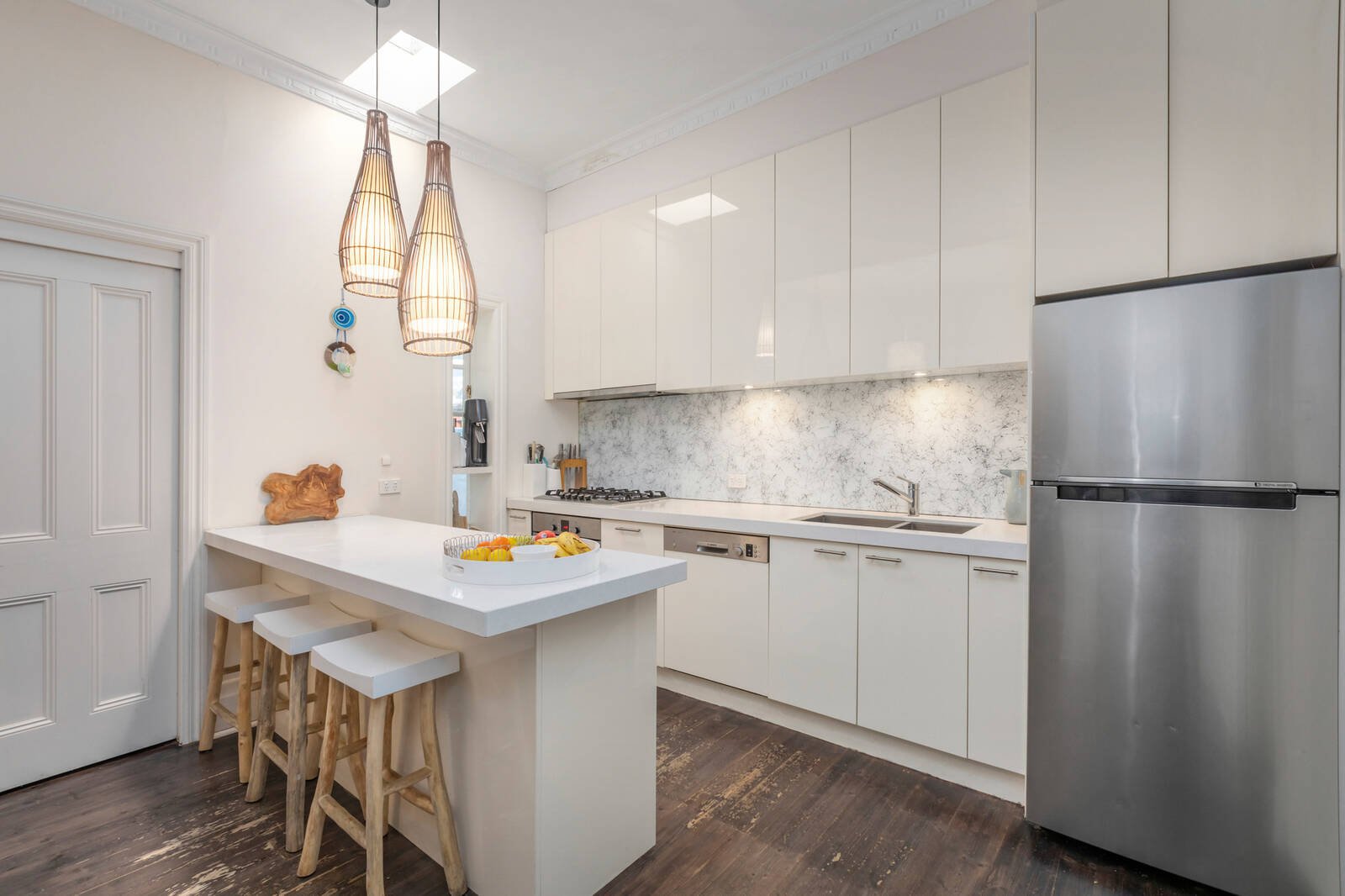 Current comfort and charm abound throughout the original home, ‘Kinnoull’, with its modern stone kitchen (Bosch gas hob, oven and dishwasher), light-filled living-dining room and brick-paved entertaining area bathed in daylong sun. A dual vanity bathroom with huge tub services 3-bedrooms, the main with a wall of built-in robes, while a study space, powder room and full laundry are pleasing inclusions. Also a gorgeous facade, leadlight entry, extra-high ceilings and polished floorboards plus attic storage, ducted heating, air conditioning (living) and off street parking.