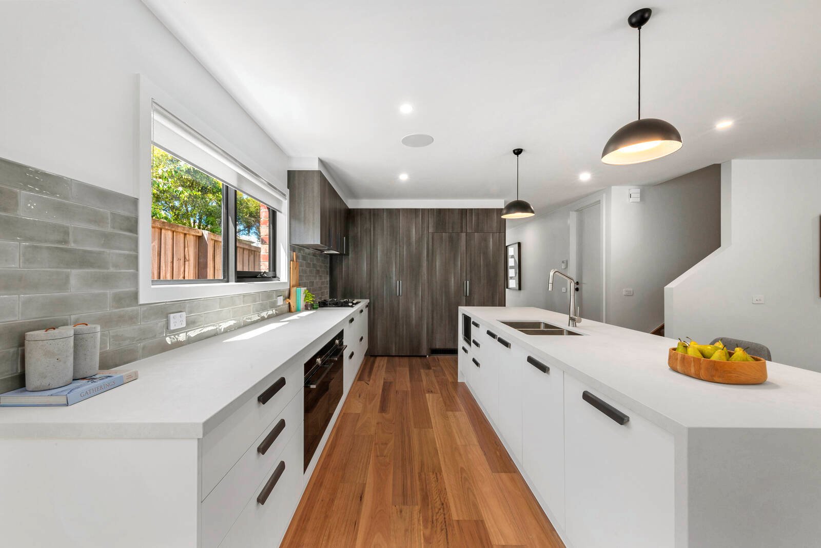 The striking façade features reclaimed bricks from a 100 year old factory exuding an urban industrial edge befitting of the city fringe location. On entry, crisp white interiors, contemporary neutral accents and blackbutt engineered timber flooring create an impressive introduction within.