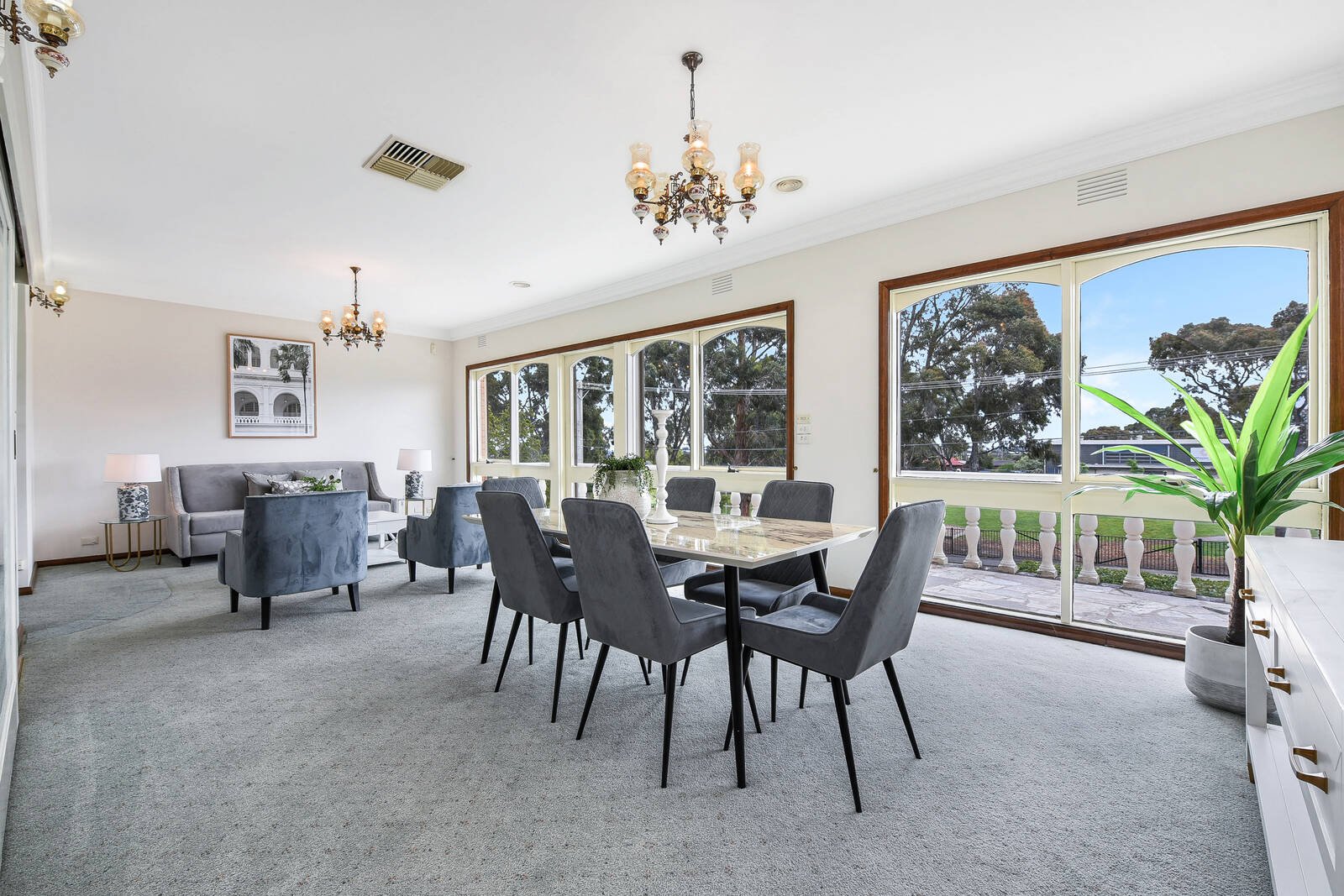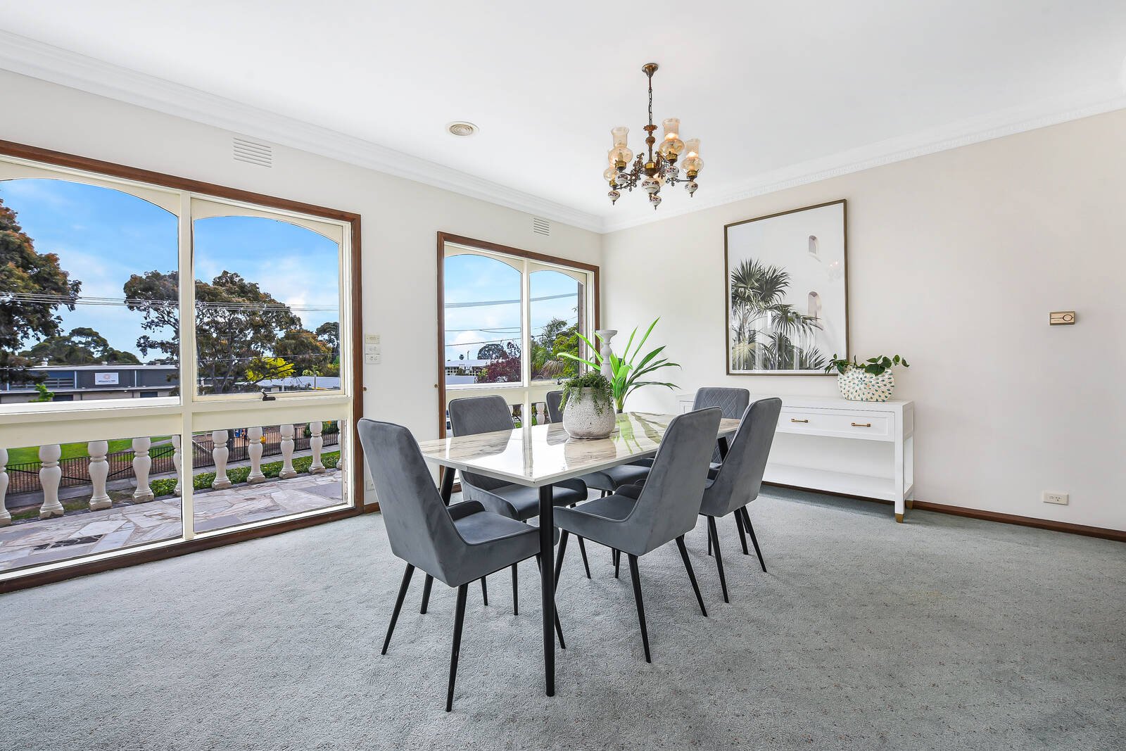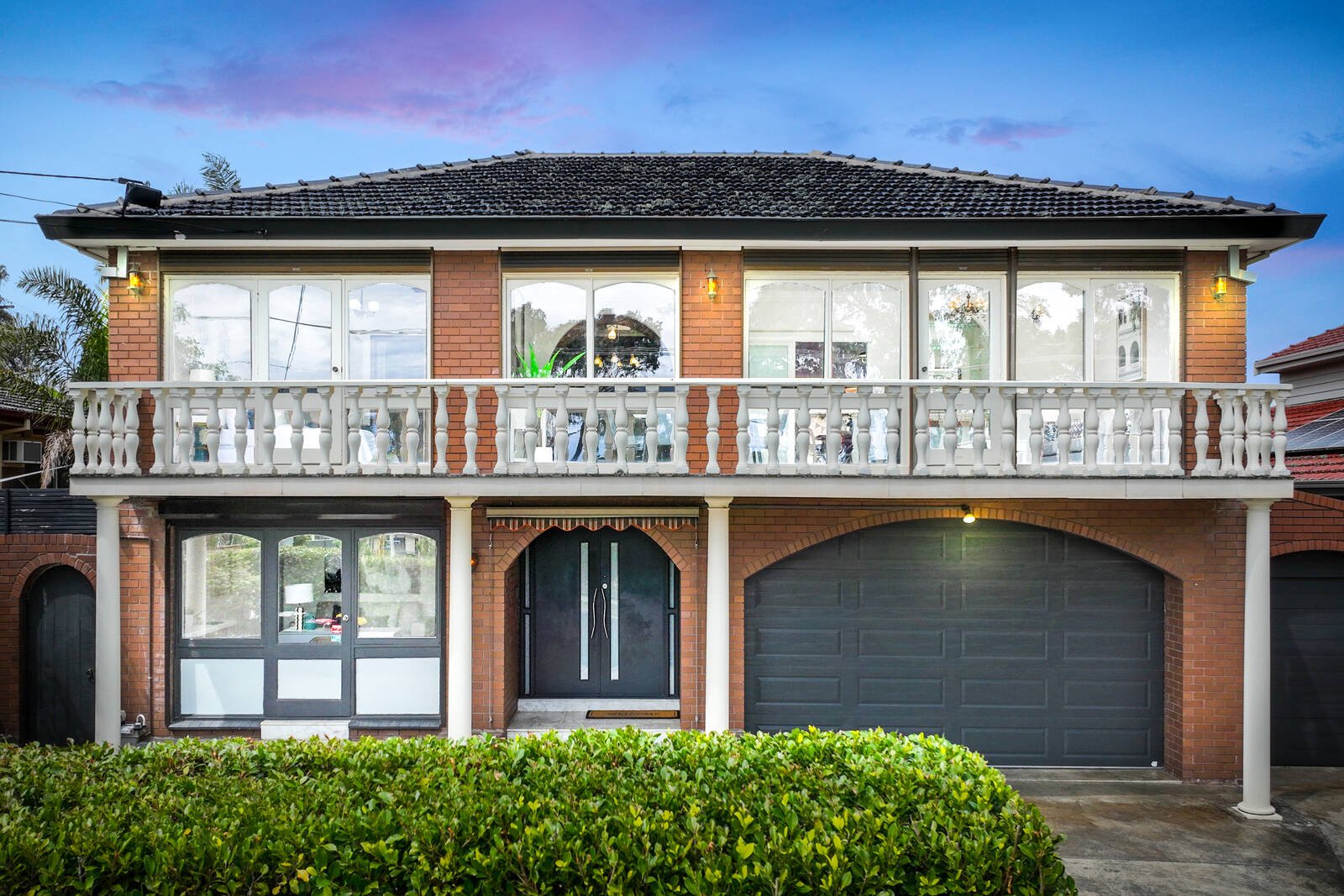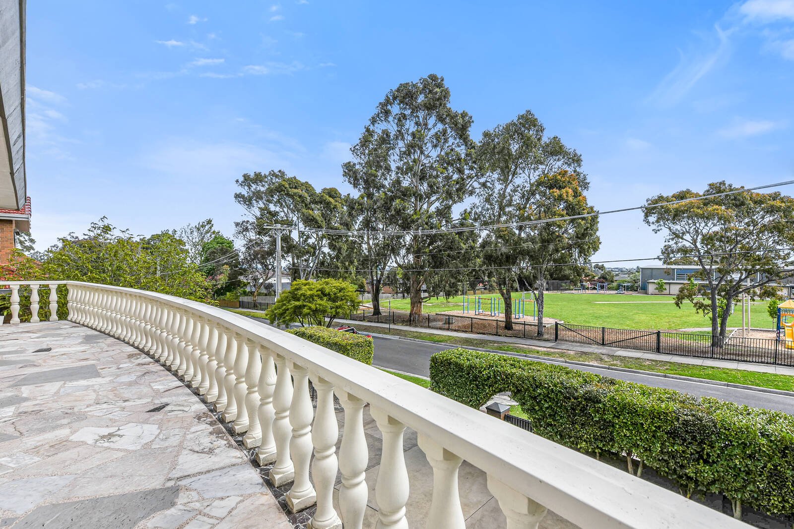 Directly opposite Wheelers Hill Primary School and boasting oodles of space on a 655sqm block, this double brick double storey family home is palatial in layout and uniquely refined. A grand brick veneer facade boasts a triple lock-up garage, abundant concreted drive-in space, a solid brick boundary fence adorned with neatly trimmed hedging, symmetrical arched glass doors and windows and a full width upper floor balcony with Romanesque white cement balustrades.