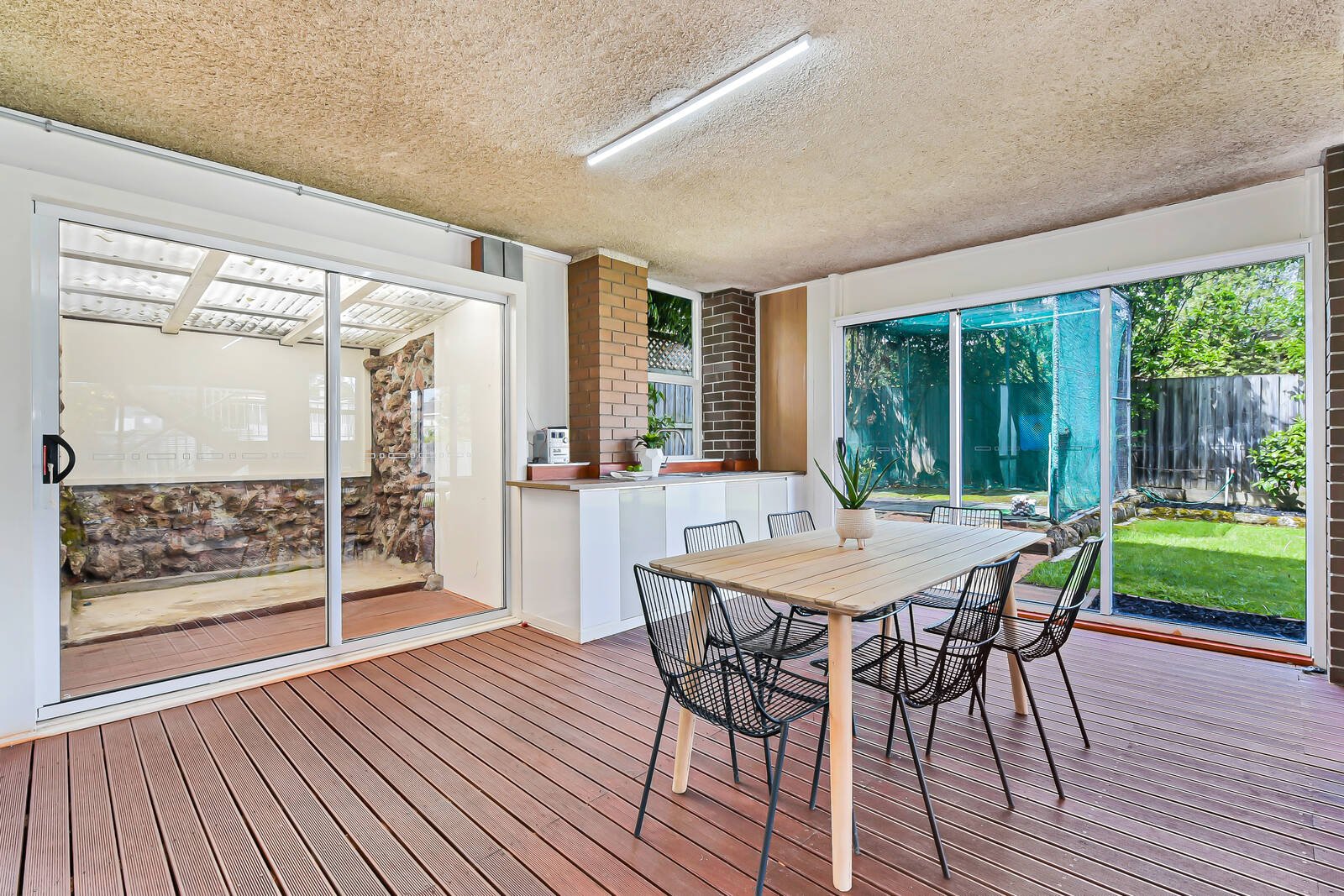 Throughout the home you’ll find a range of distinctive features and finishes, including polished timber flooring, plush carpet, high ceilings, modern LEDs, decorative arched square-set openings, exposed brick and rockery feature walls, split system/evaporative air conditioning and ducted heating, ornate sliding glass doors, overhead skylights and chandelier inspired pendants. Overall, there are 5-6 sizeable living/retreat areas including an expansive enclosed alfresco with kitchenette, plus a family-friendly backyard that also offers a sports net and manicured landscaping.