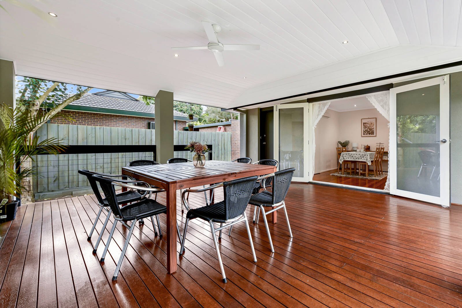 Sunny, fresh and vibrant, the home boasts polished timber hardwood floors which contrast delightfully against the freshly painted light sky-blue walls and crisp white ceilings. Modern LED down lights and large furnished windows invite a bright ambience into the home. High ceilings, ducted heating and ceiling fans promote comfort, while out back, an expansive entertainers’ deck looks out across a lush, grassed backyard, and vaunts vaunted clad ceilings and privacy blinds.