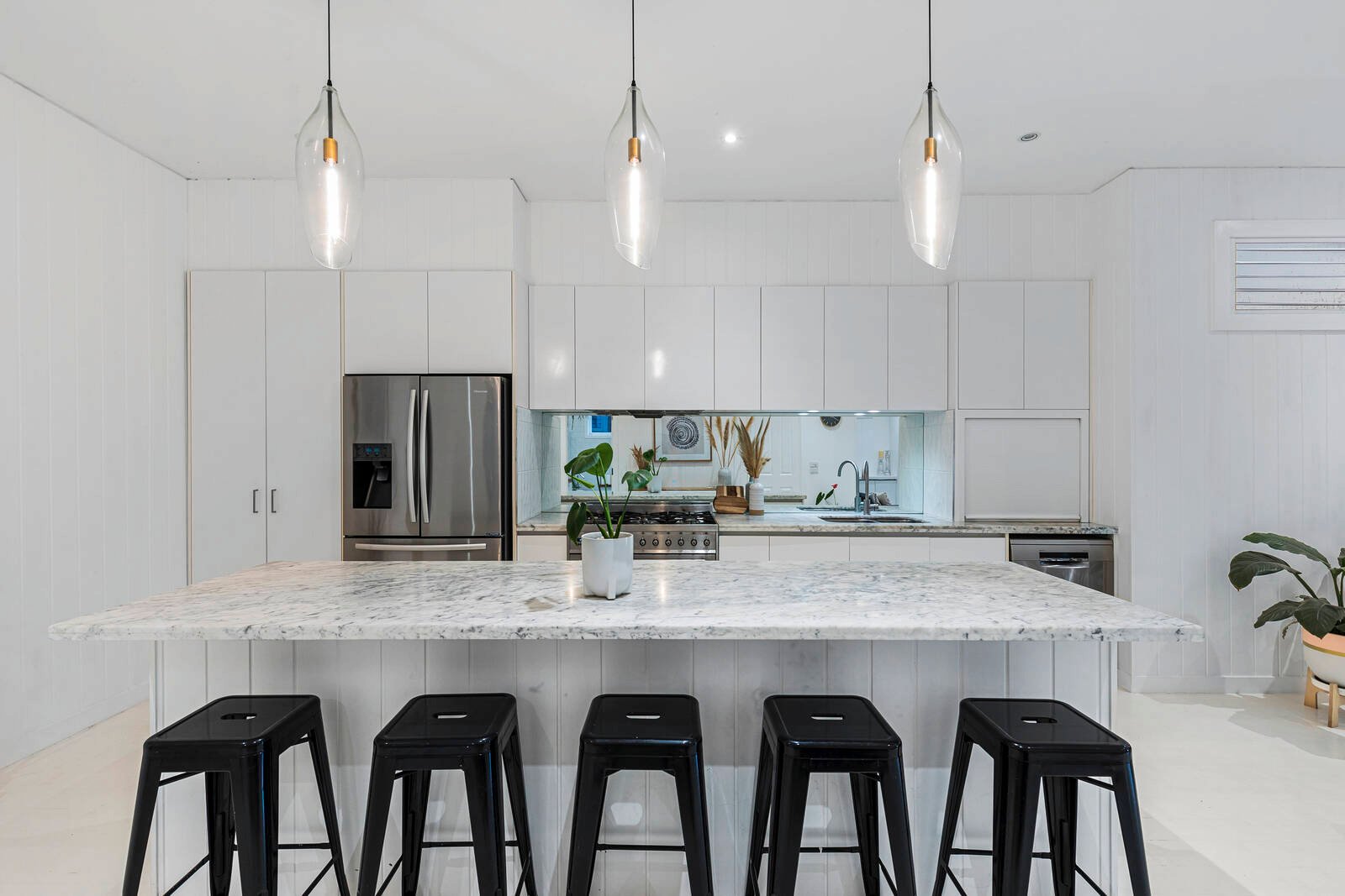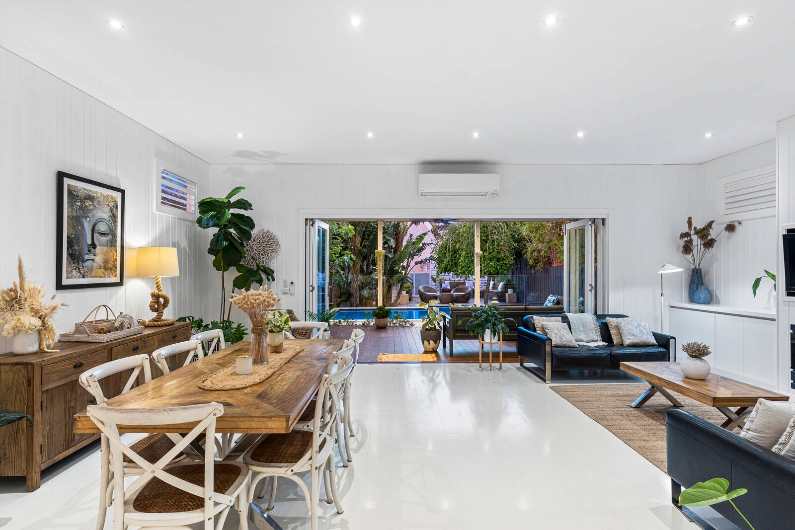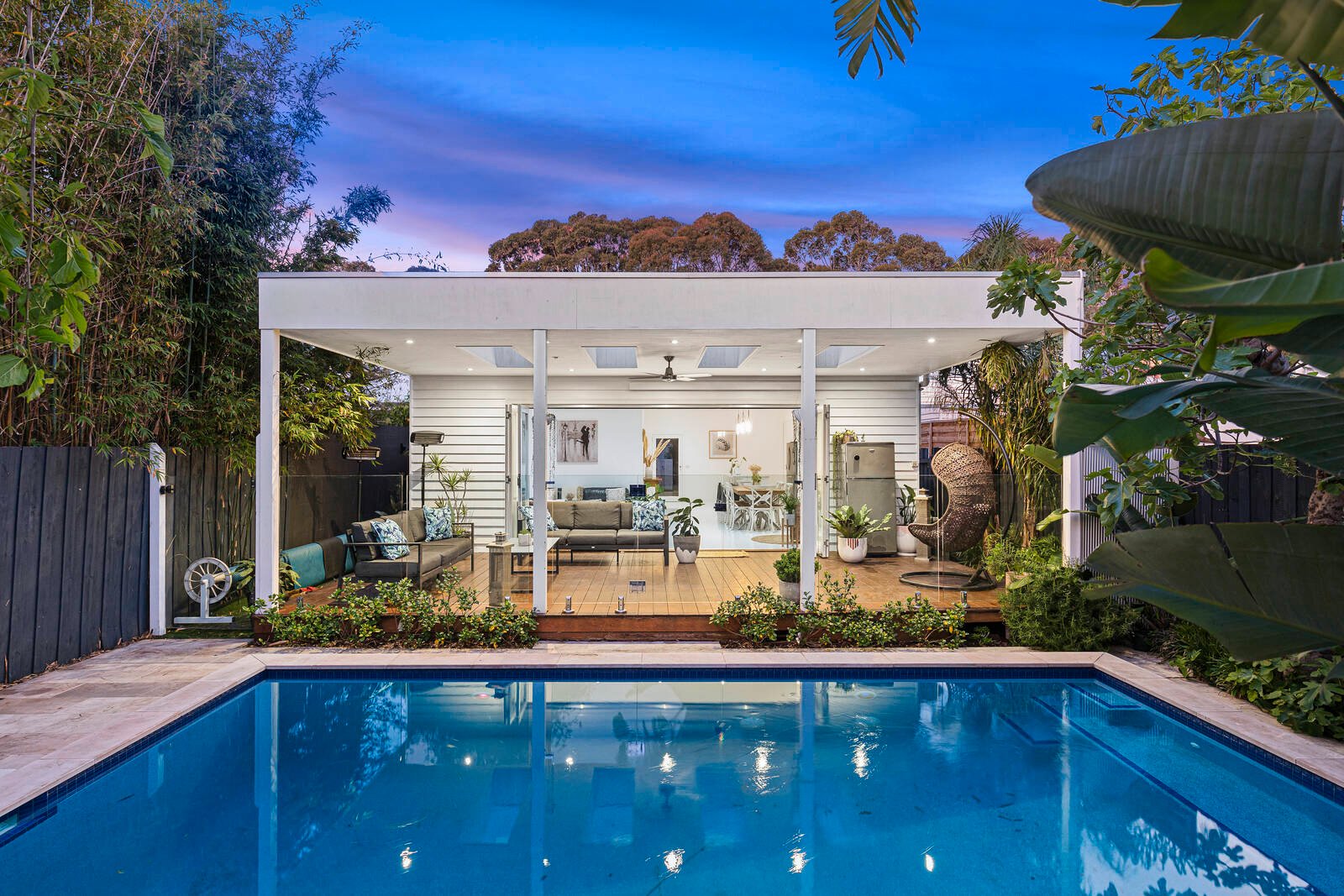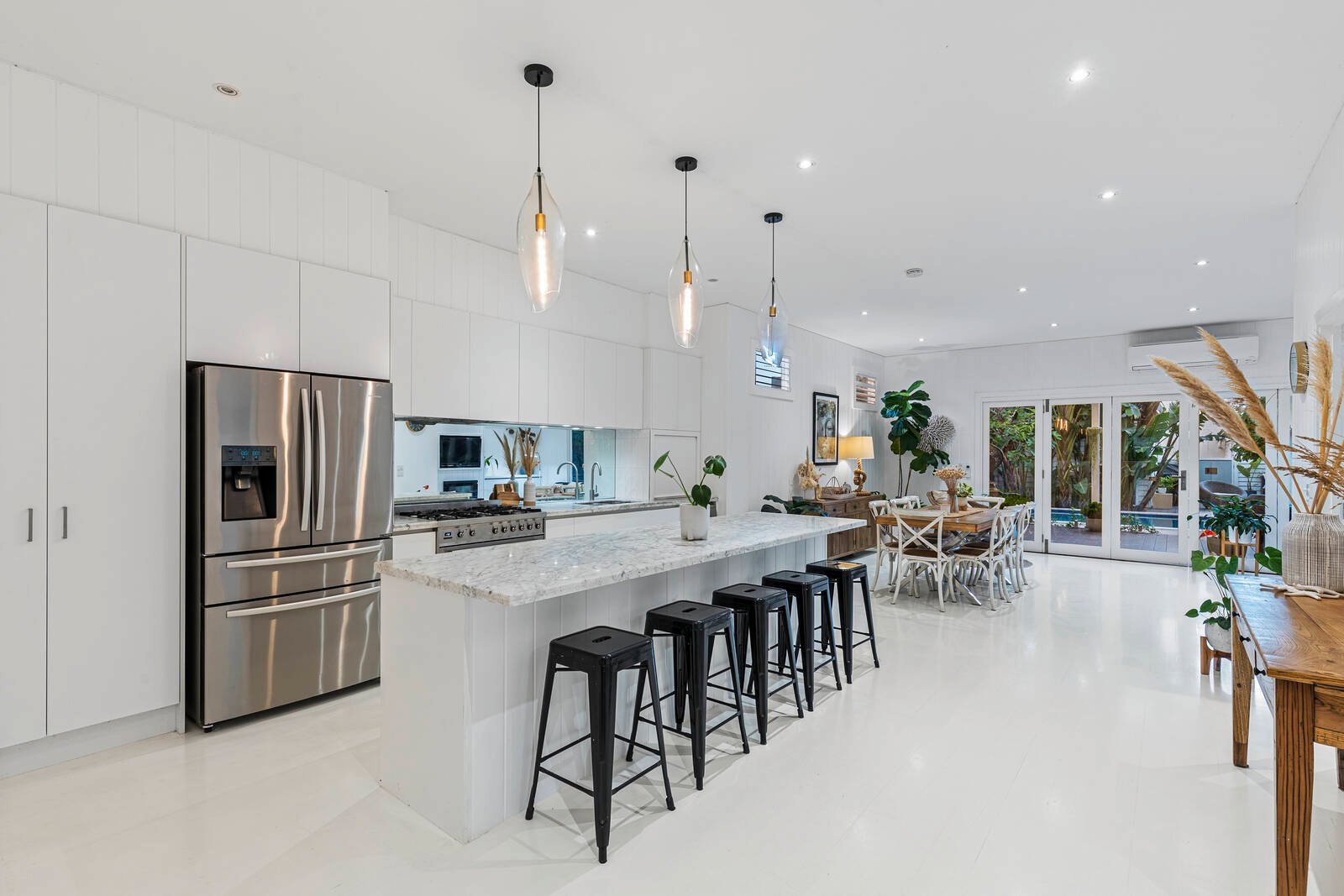 Classic era charm creates instant street appeal with cutting-edge interiors and contemporary comforts that will be the envy at every gathering. First-class living begins with the expansive open living room that seamlessly extends through bi-fold doors to a superior roofed alfresco dining domain fitted with fans and striking sky-lights. The kitchen is equally impressive, comprising a magnificent freestanding SS Miele oven and Carrera Marble Island bench, full length breakfast bar, finger-touch self-closing cabinetry and grand pendant lighting. As the weather warms up, the pool is the perfect place to cool off, with a bonus second outdoor entertaining deck to the rear.