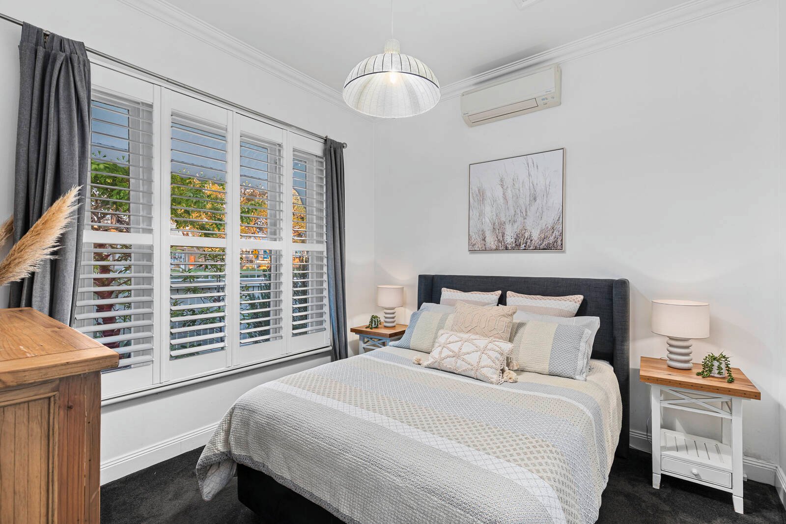 With exquisite fitments, finishes and pristine presentation, this inspired home pampers sensationally with a sublime spacious master bedroom complete with plantation shutters, plush carpets, chic integrated study, a vast walk-in robe and gorgeous ensuite. There’s two further bedrooms, each with split systems, carpets and built-in robes, a rear home-office or bungalow/fourth bedroom with a loft and ensuite, a living room split system and cosy gas fireplace, an inground pool fitted with solar, electric and solar blanket heating, storage shed and multiple domains for each member of the family to find their favourite chillout space.