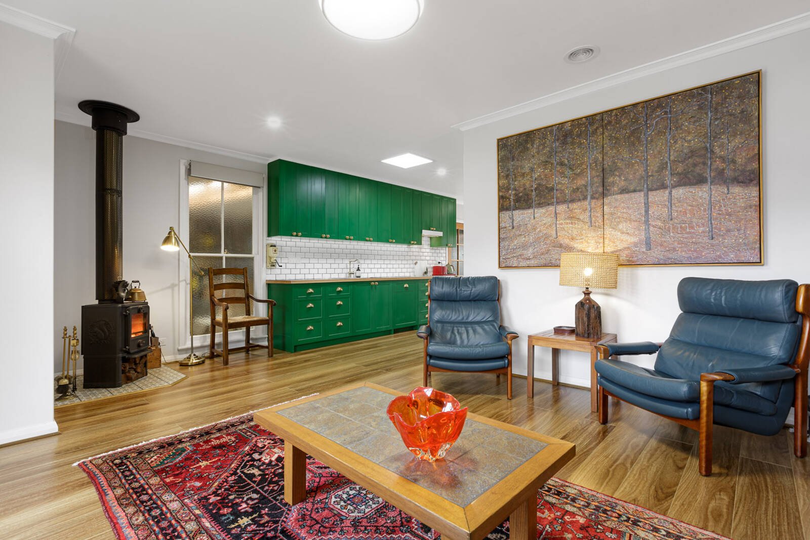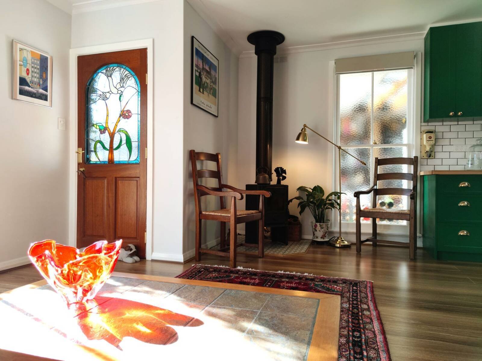 This light filled home comprises bright and sunny open plan living and dining, a stylish kitchen with sliding doors onto a decked veranda providing extended living space large enough to entertain the whole family. Two bedrooms (one ensuite) with beautiful aspects of sunlight and gardens, a bright hallway, modern bathroom, and a separate study. Other recent additions include ducted gas heating and a Scandinavian wood heater as a hygge centre piece.