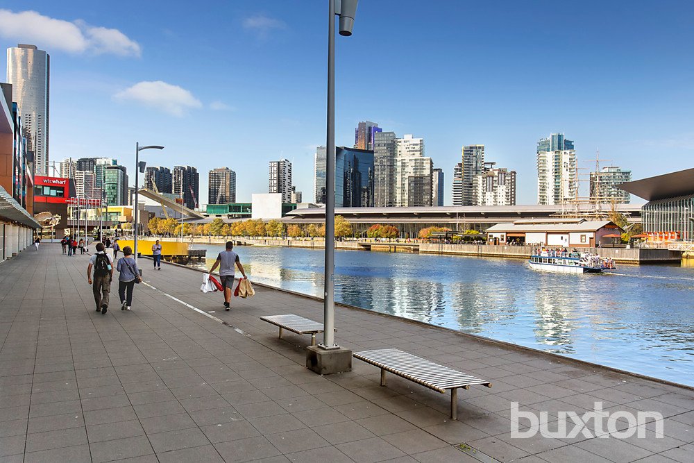 Then it's through to the massive walk-in robe and into your glorious fully tiled ensuite with a sumptuous bathtub, roomy shower and stylish everything. Wow! The central bathroom is just as impressive and the exceptional amenity is completed by a tastefully integrated European laundry. The feeling inside your new home couldn't be more peaceful but this belies that fact that you are an easy walk, along the river boardwalk if you wish, to everything you love about Melbourne. You can see the casino complex from your front door and you have a plethora of public transport options at your fingertips.