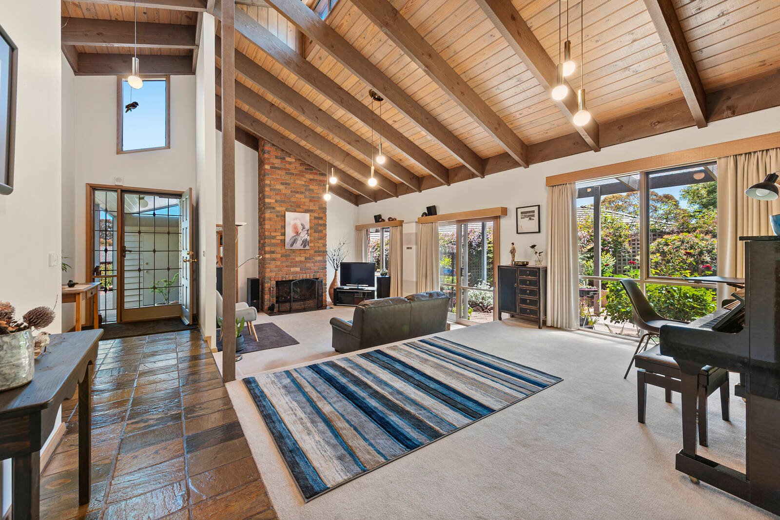 Upon entry, you will be blown away by the impressive exposed timber cathedral ceilings that flow throughout this home. The expansive split level formal living and dining area provides a northerly aspect which floods the property with natural light. To keep you warm all winter long, there is a wood fire place and wall furnace.