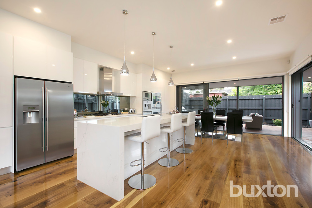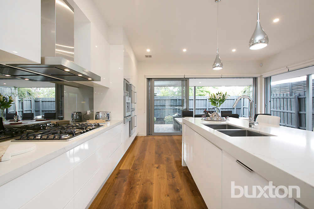 With a full complement of Gaggenau appliances (including espresso maker and double-oven) to delight the family chef and a wall of bespoke cabinetry with 60" TV adding home-entertainment to the master-suite, this exceptional home has all the designer detail that style lovers adore - including thick marble-look stone benchtops, wideboard European Oak floors, fully-tiled bathrooms, lofty up to 3m ceilings and three sets of vast sliding stackers.