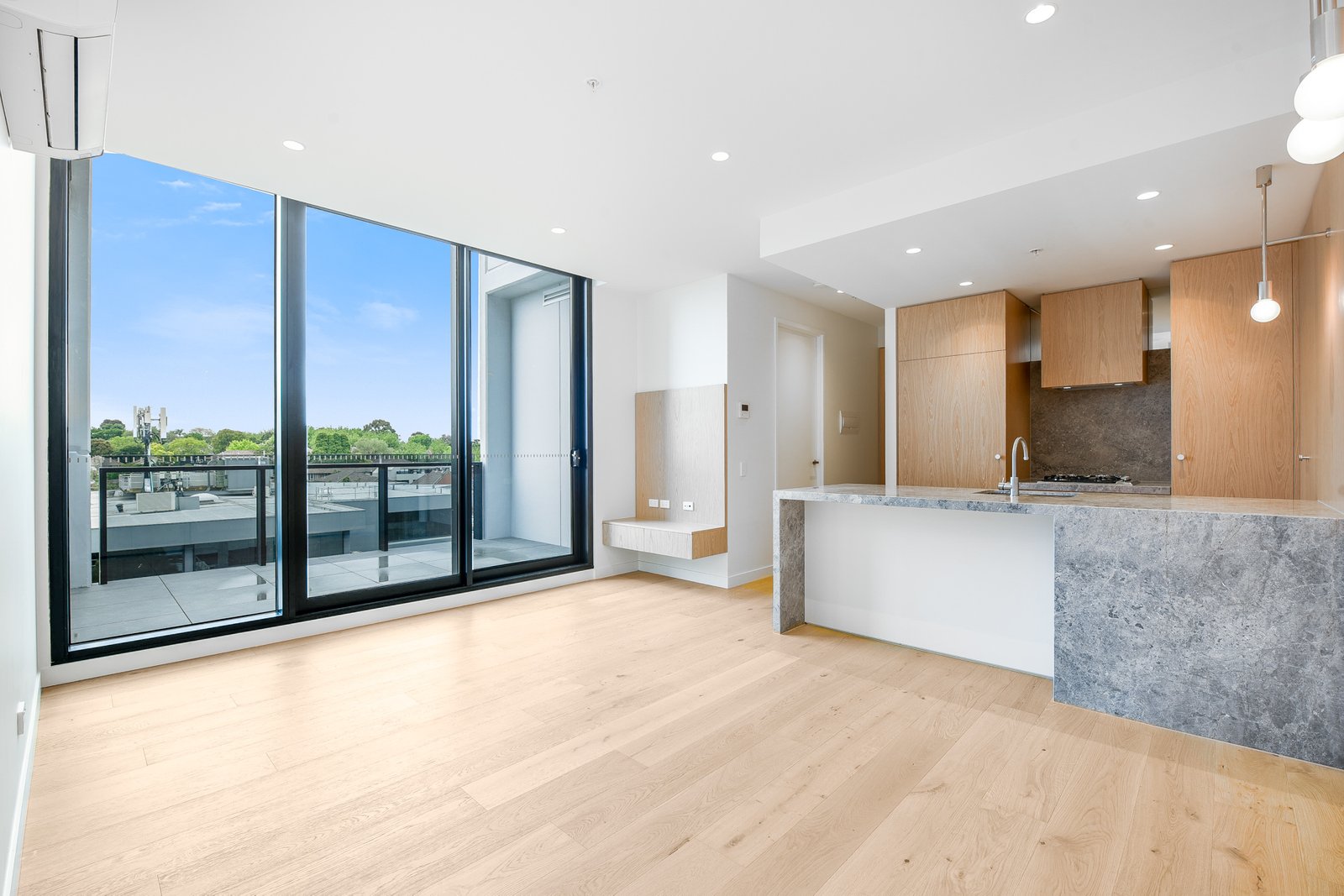 • Sunlit open plan kitchen/meals/living area with split system