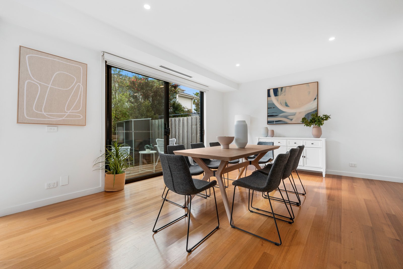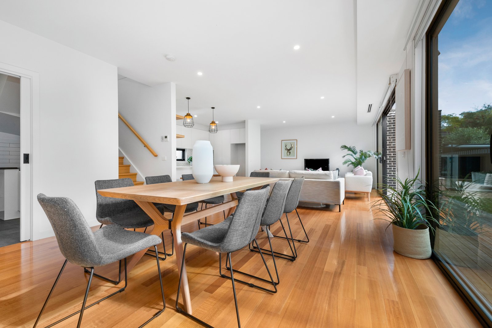 With its contemporary architecture, unrivalled luxury and designer styling, this magnificent, streetfront residence provides a family lifestyle of absolute class. Tasmanian Oak flooring and natural light make a spectacular impact throughout the open-concept interior, with living/dining merging with a striking stone-topped kitchen featuring quality appliances (including 900mm cooktop and oven), before unfolding through stacker sliding doors to a merbau deck and low-maintenance gardens – creating a seamless flow for indoor-outdoor entertaining. Impressive accommodation is further heightened by 3 upper-level bedrooms (main with luxe ensuite and all with mirrored robes) plus a chic family bathroom. Ducted heating, refrigerated AC, powder room, double glazed windows throughout, large laundry with ample storage, ducted vacuum, water tank and single garage with independent driveway is an additional display of superior quality. In a class of its own and free from Body Corporate restraints, this inspiring home is positioned in one of Oakleigh’s finest tree-lined streets, a leisurely stroll to Oakleigh central, vibrant Eaton Mall, train station, schools and parklands.