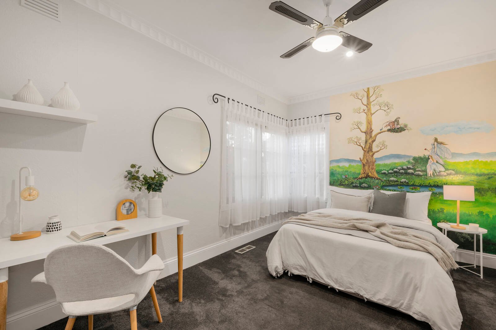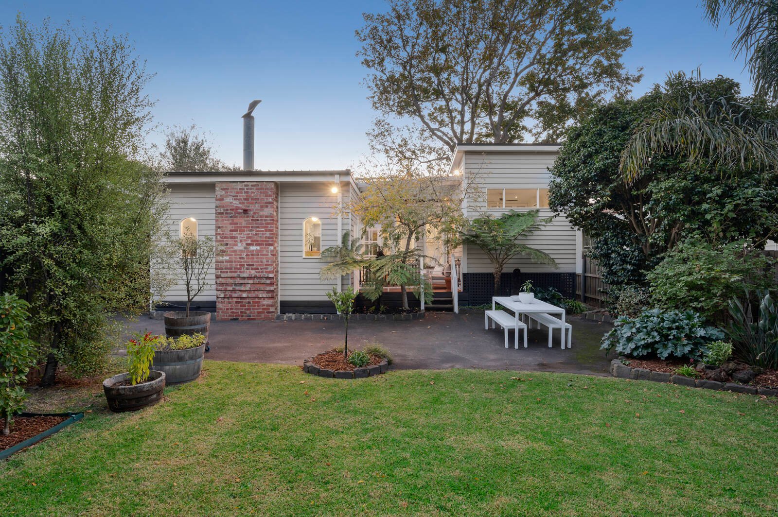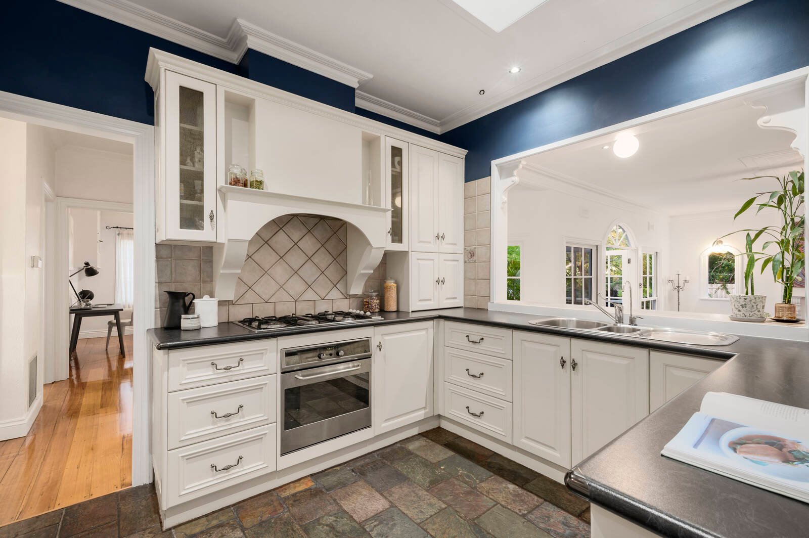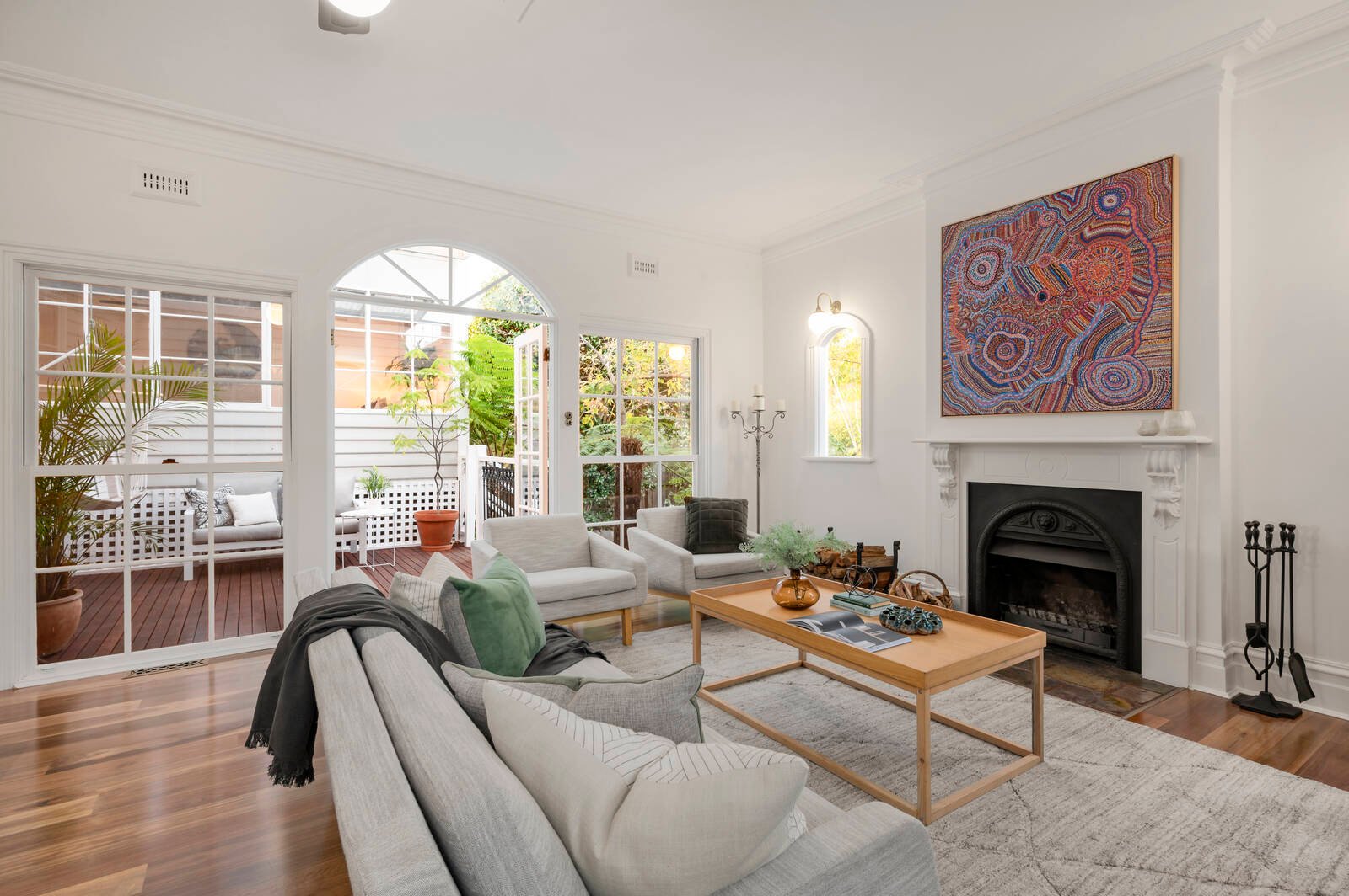 Timeless by design with a Provincial-style European appliance kitchen (with Asko dishwasher) and an encaustic-tiled designer bathroom with separate powder-room, this gracious home unfolds beyond a lovely leadlight entry with high corniced ceilings, textural timber floors and impressive open-fireplaces (for both the living zone and the grand main bedroom). Appointed for modern life with airy ceiling fans for every room, reverse-cycle air-conditioning front and rear, and ducted heating throughout, this romantic period-inspired home is set in fairy-tale gardens with tall trees, broad lawns and gated two-car parking including a carport.