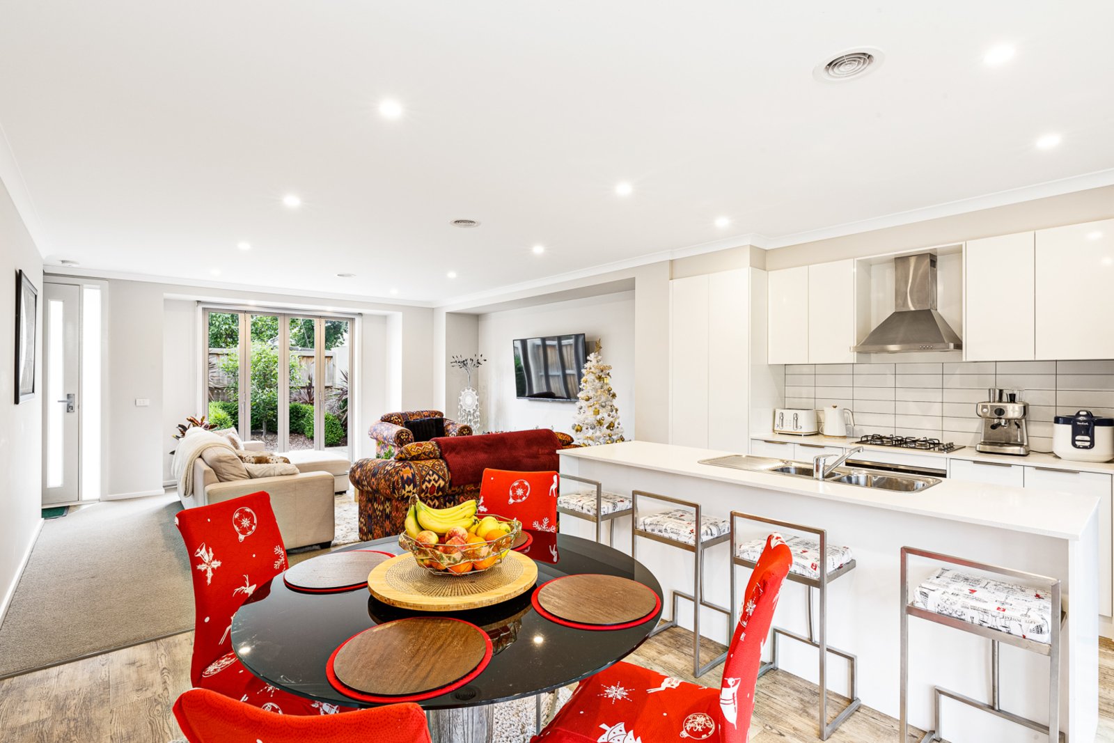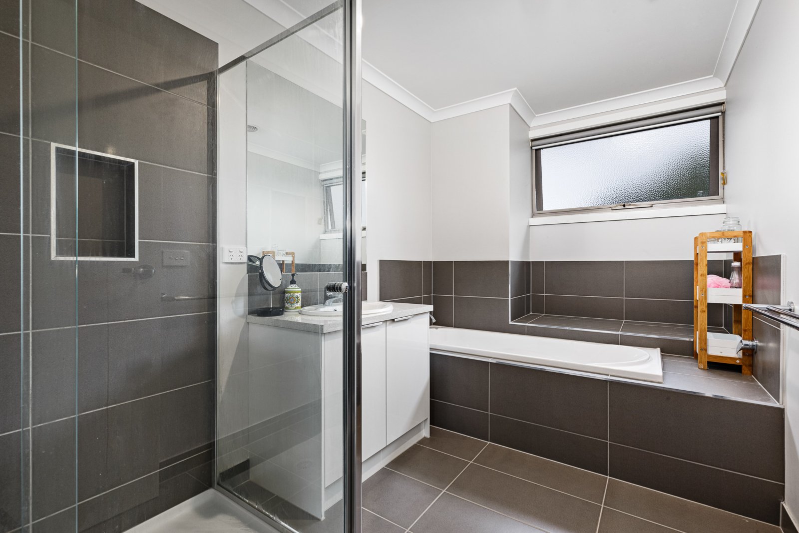 An open plan kitchen, dining and spacious lounge room. Kitchen is complete with gas stove and oven, dishwasher and plenty of storage. From the kitchen area hold a laundry and separate toilet. Upstairs includes a study area along with three good sized bedrooms all with built in robes, master is complete with ensuite and walk in robe. Main bathroom holds a shower, vanity, bath with separate toilet.