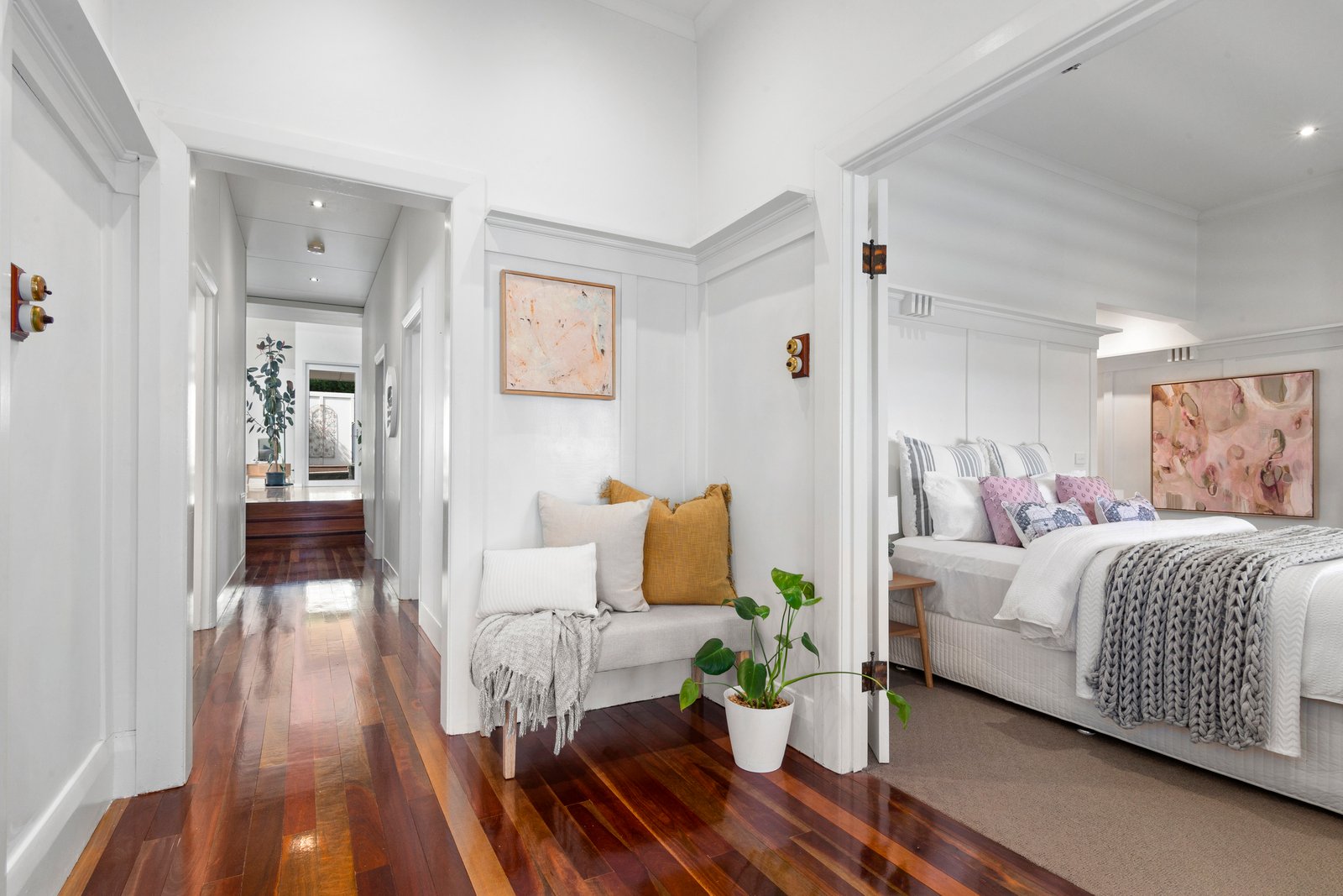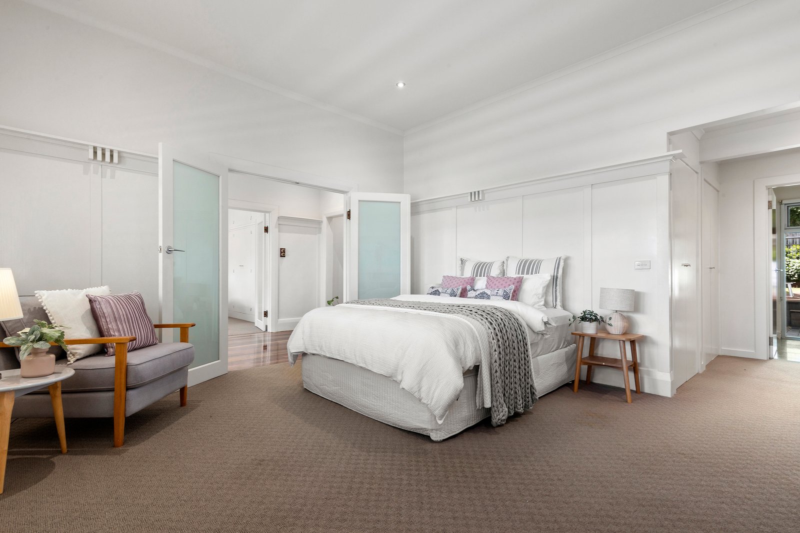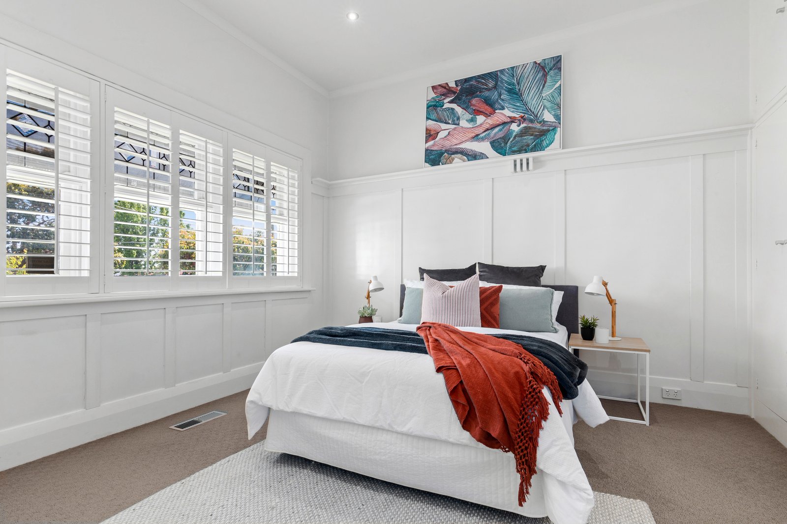 Set behind a picket fence and established trees, the classic bungalow façade features a grand verandah, double door entry and leadlight windows. On entry, a wide central hallway takes your eye through the length of the home, with polished timber floors, high ceilings and well preserved character features forming an impressive introduction within. Double doors lead to the master suite which includes an original mantel, walk in robes and stylish ensuite with modern finishes and quality fittings. Three additional bedrooms are all well-proportioned and serviced by a central bathroom featuring floor to ceiling tiles, walk-in frameless shower, and modern vanity with stone benchtop.