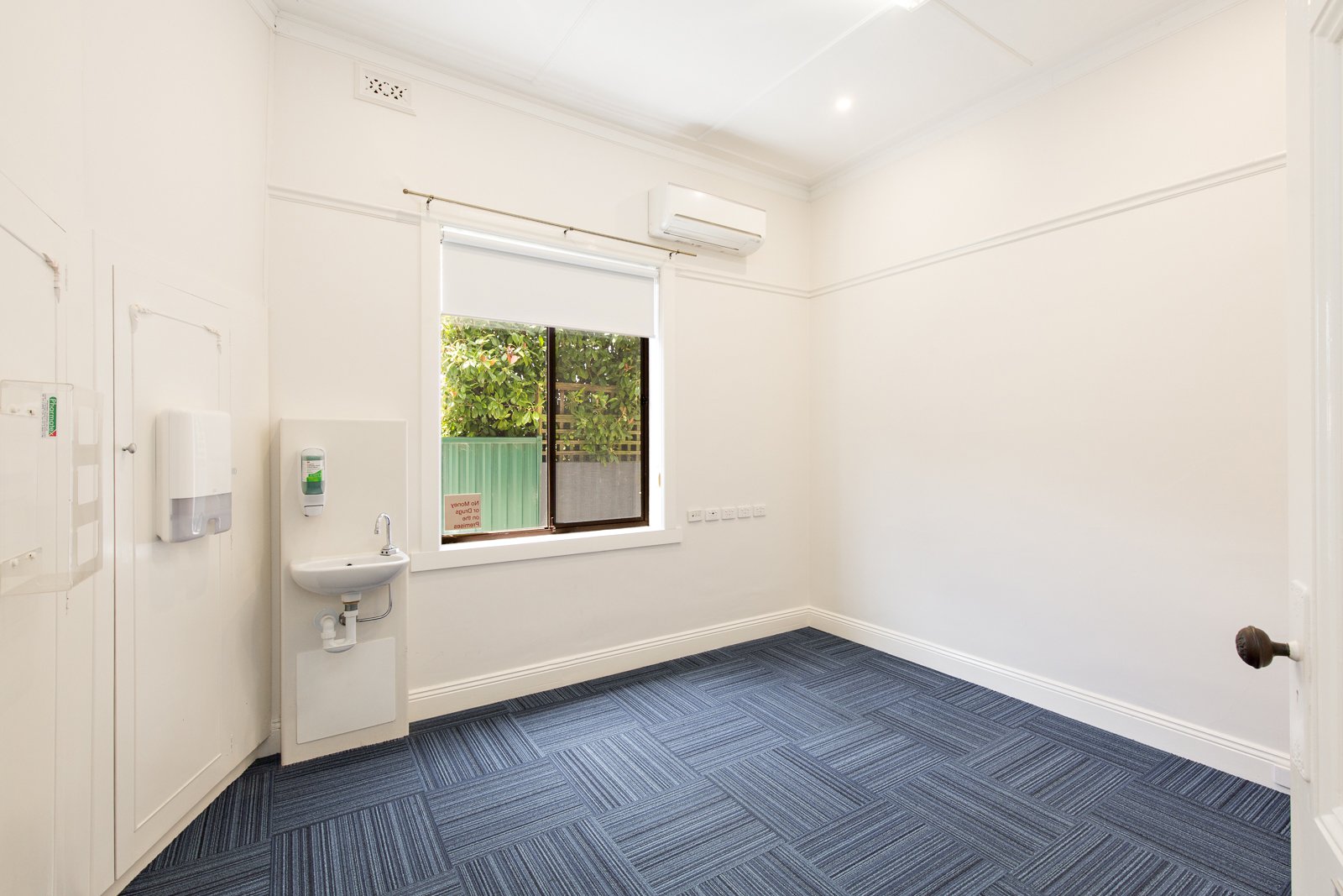 - Five separate consulting rooms, each with hand basins (and sensor taps) & split systems