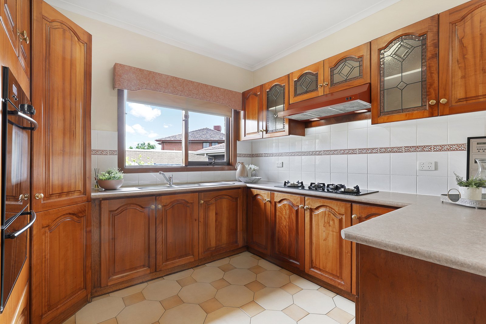 Step inside and you’ll instantly appreciate the build quality – in pristine condition with premium finishes including elegant geometric floor tiling, pelmet top velvet curtains, wool carpets and a hardwood timber kitchen.