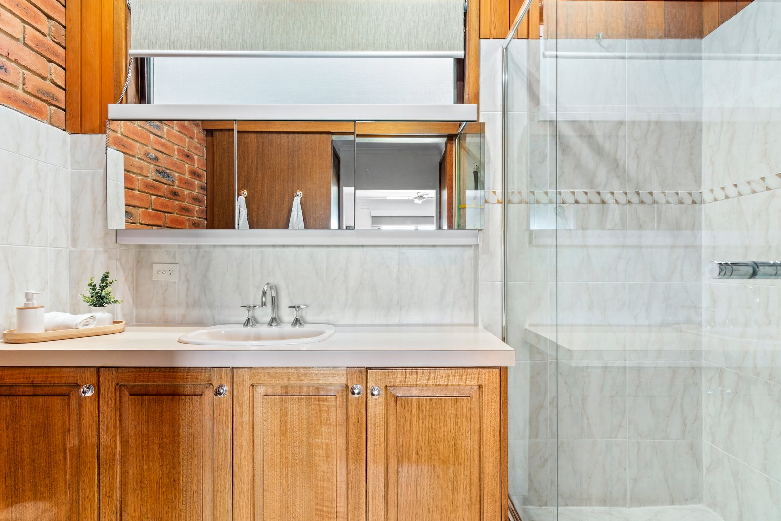 Comprising three bedrooms, the master features walk through robes and ensuite. Two additional bedrooms include built-in robes and are serviced by an updated family bathroom finished in floor to ceiling tiles, modern vanity with stone benchtop, spacious and fully glazed shower / steam room with quality fittings.